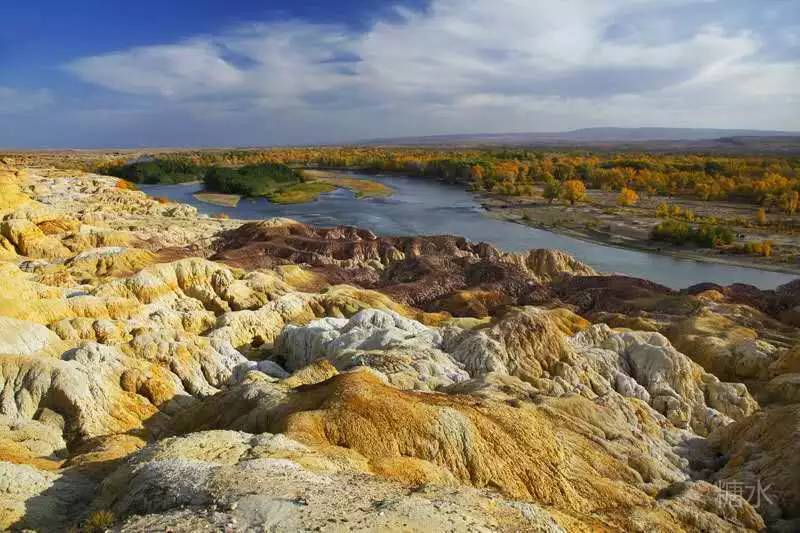 五彩滩,神奇的地貌特征,一边林木茂盛,一边寸草不生。