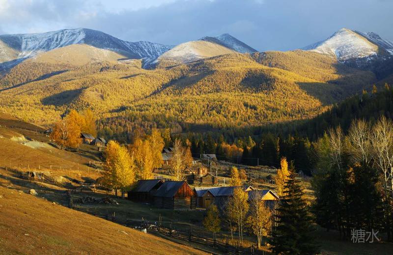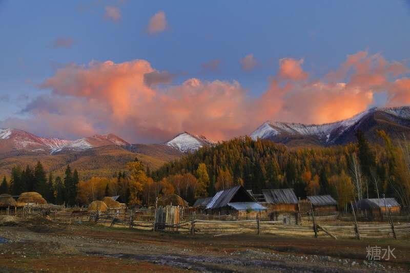 夕阳下的白哈巴小村庄