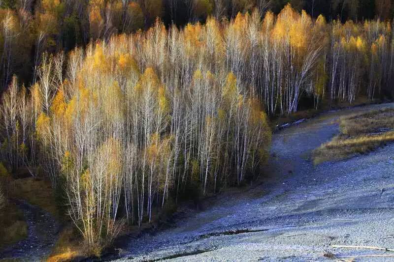 金色,布尔津秋季落幕的盛装! 布尔津的秋天十分短暂, 一股寒流,一层飘雪, 金色落尽,便是冬天。