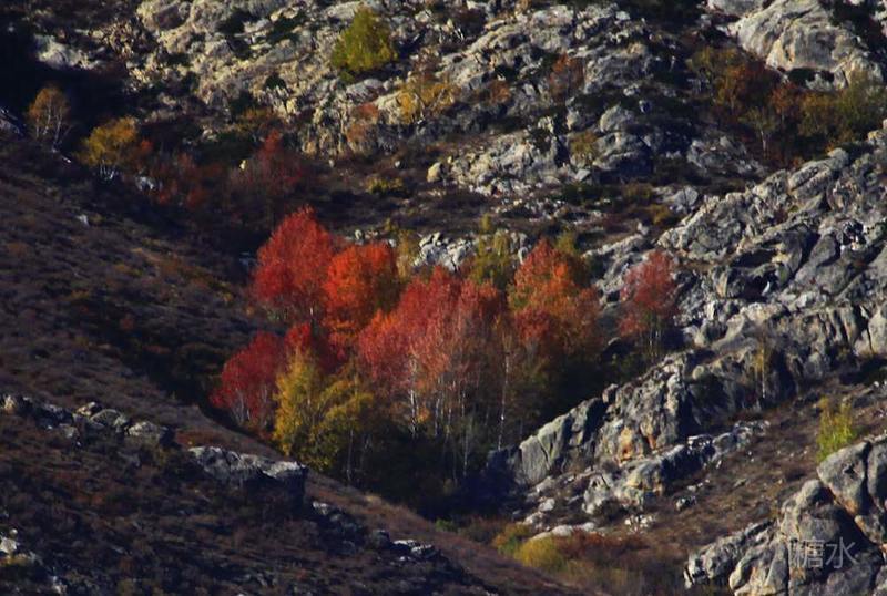 山间白桦,一片火红压枝头