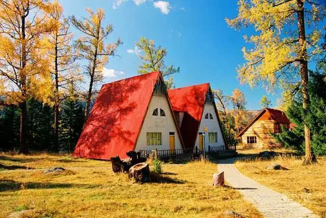 喀纳斯风景区,俄式红顶木屋。