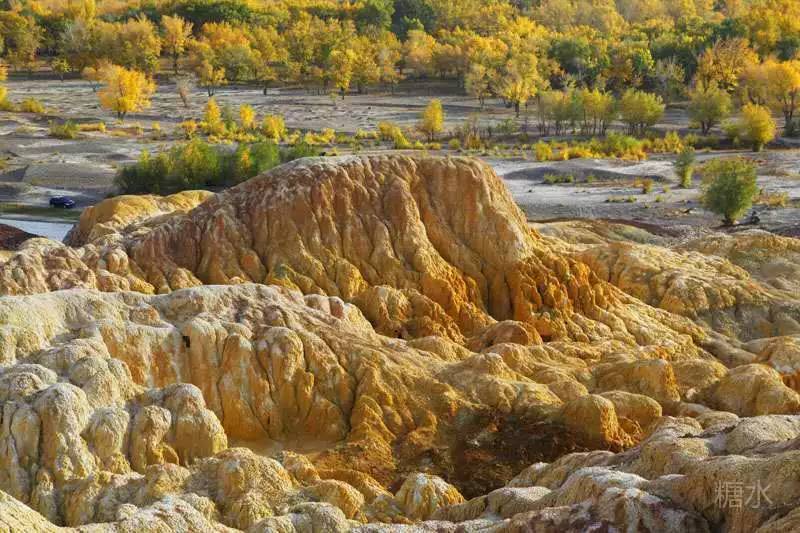 喀斯特岩石,标志性赭红幻化为秋的金黄。