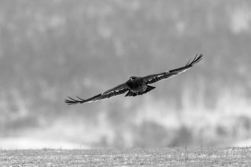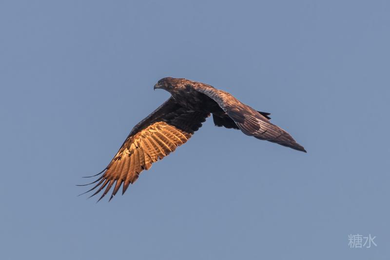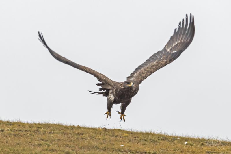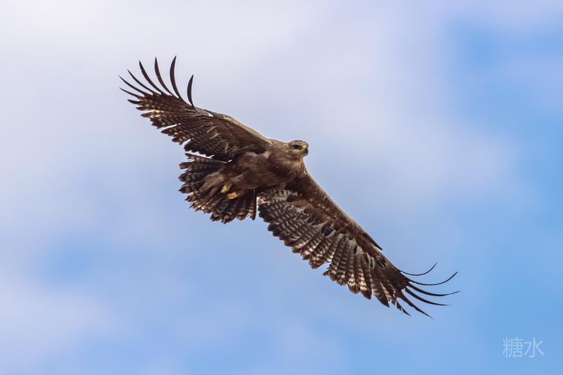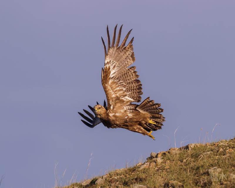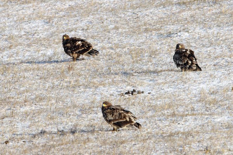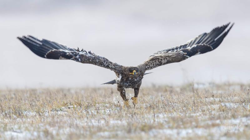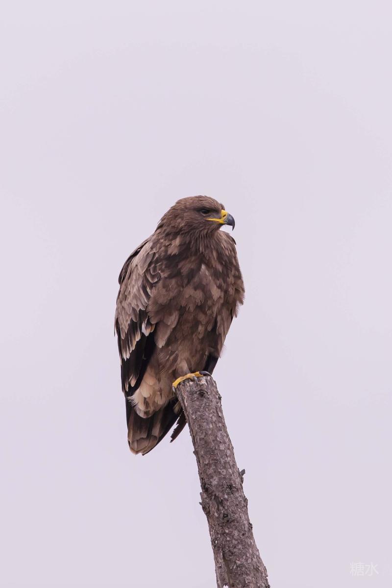 后来有经验的鸟友说、不用急、早上去拍草原雕一般不要离它太近就能拍好、因为鸟身体上羽毛有湿气、如果没有风、飞起来比较吃力...
