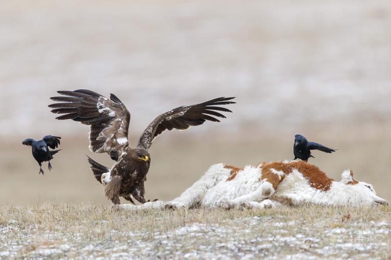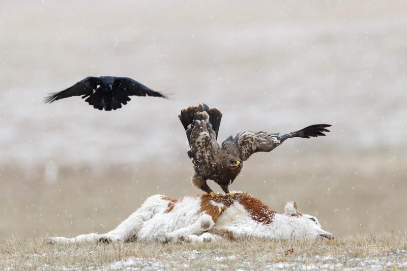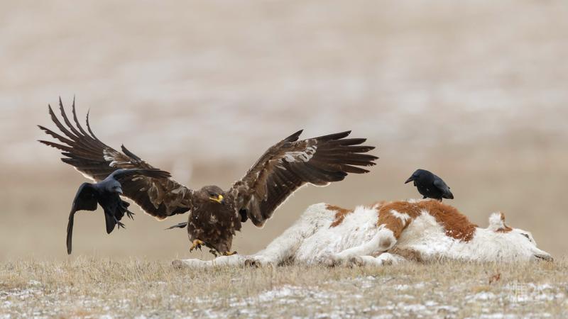 最有趣是的草原雕、在🐂哥身上好好饱餐一顿吧……乌鸦和喜鹊成了它的死对头、干扰它