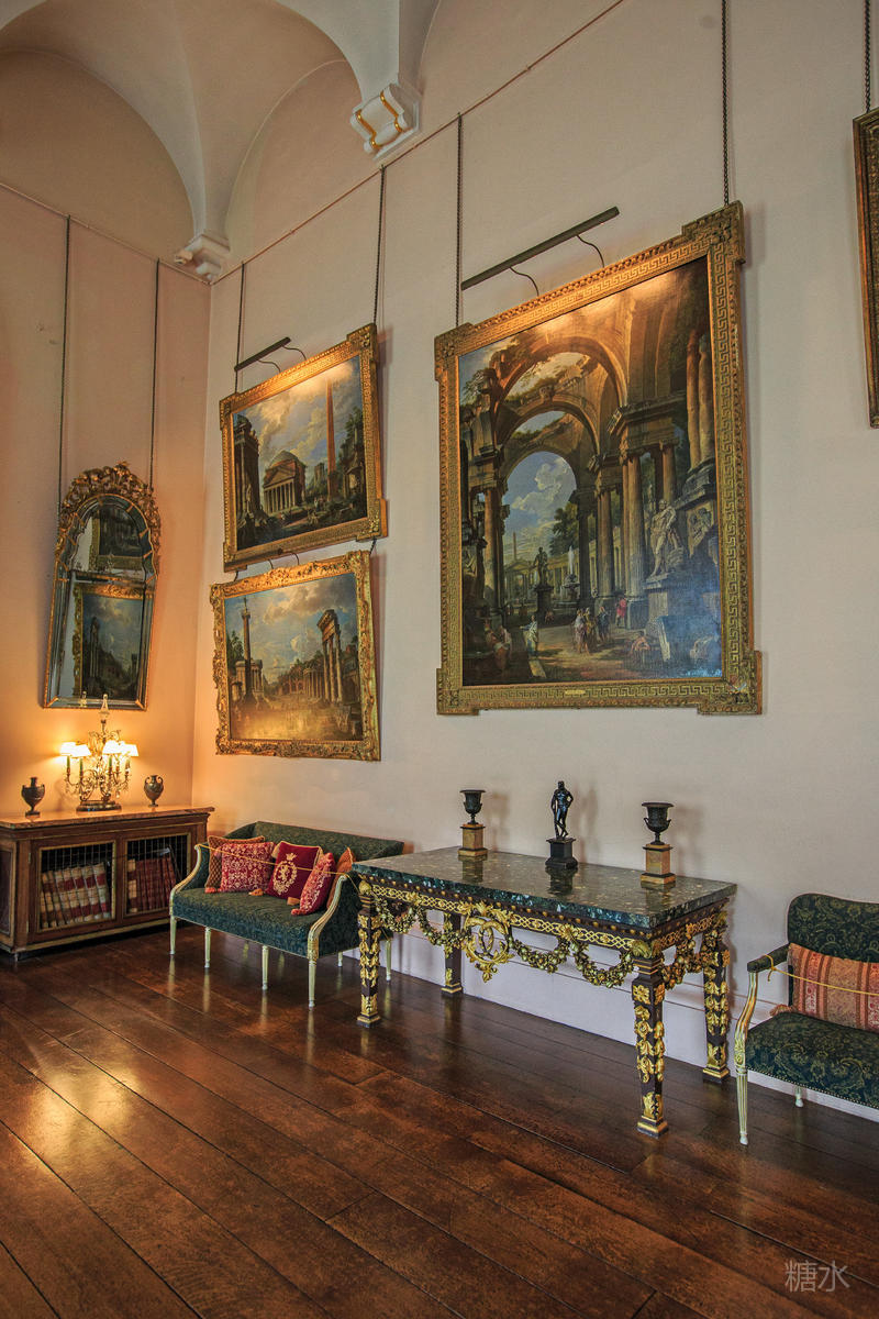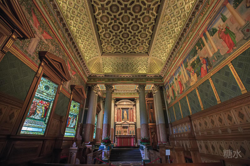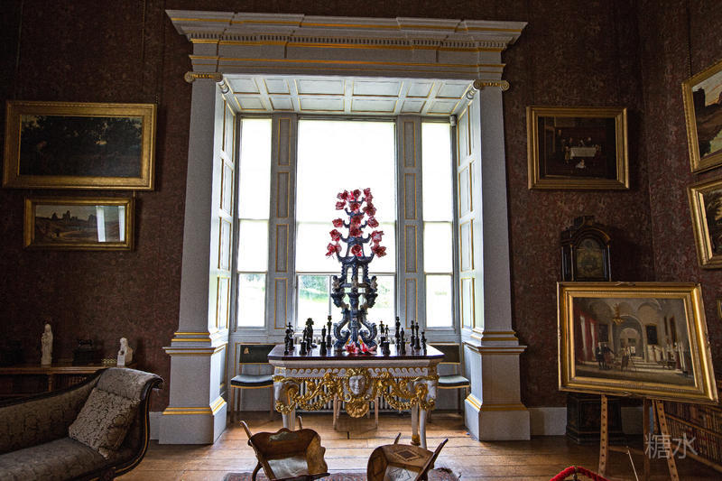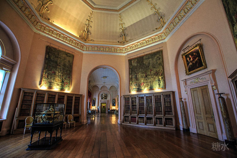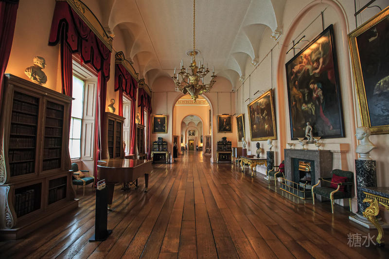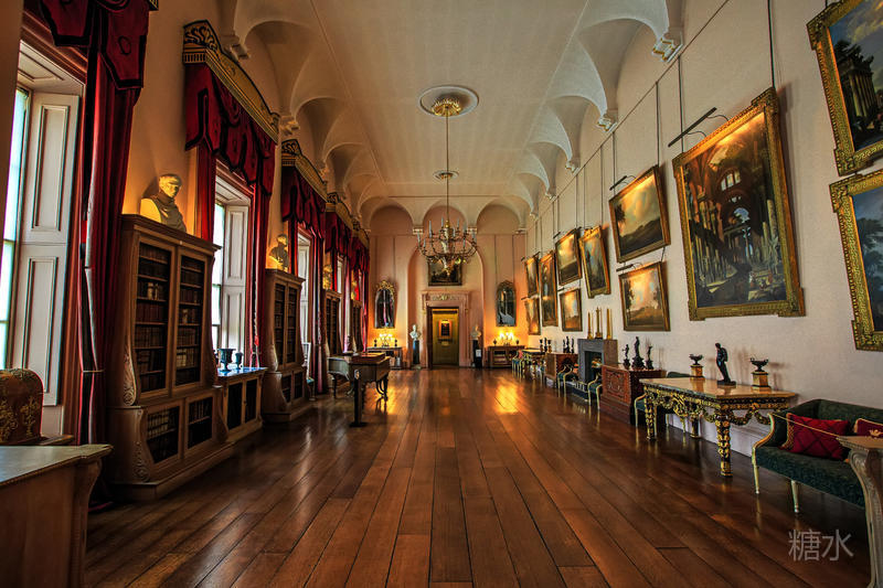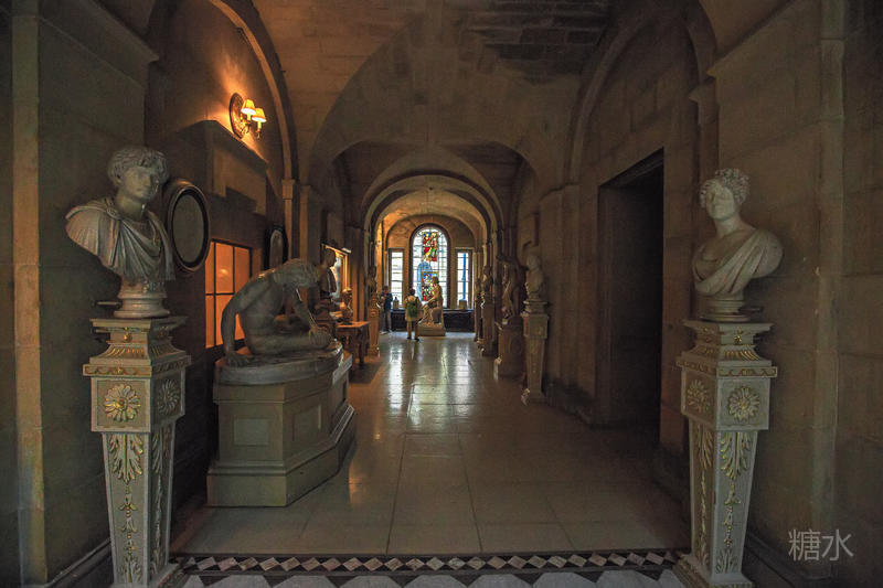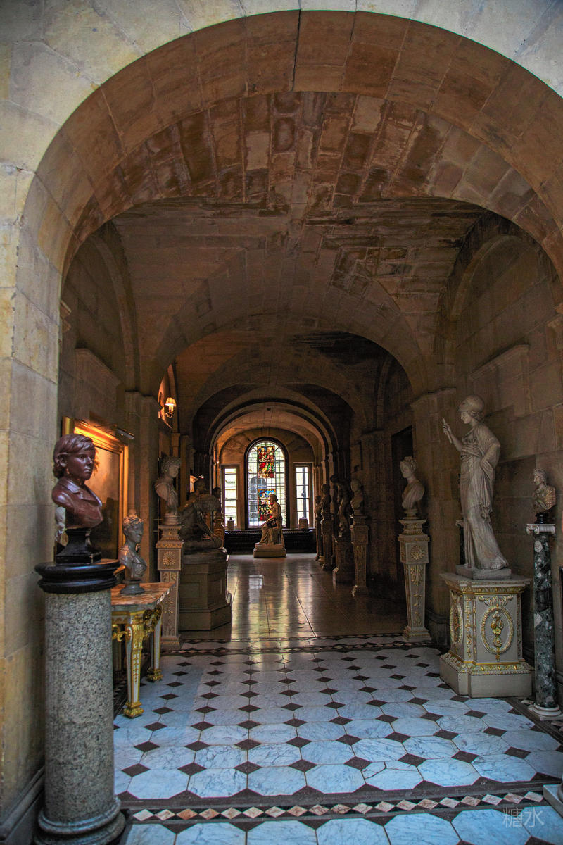 一进入正门两旁便是古堡中的古董走廊,里面收藏着18、19世纪由历任卡莱尔伯爵收藏的古董,神话人物和各种文明中的神灵反映出当时人们对古典文明,神秘文化的浓厚兴趣。在博物馆厅中的家具包括了摄政时代的椅子、波斯地毯以及许多17世纪的家族成员肖像。长廊中的肖像画简直就是霍华德家族的族谱,礼拜堂位于古堡的西翼,其中的彩色玻璃是史兰顿勋爵也是当时海军大臣霍华德于1870~1875年改造的。