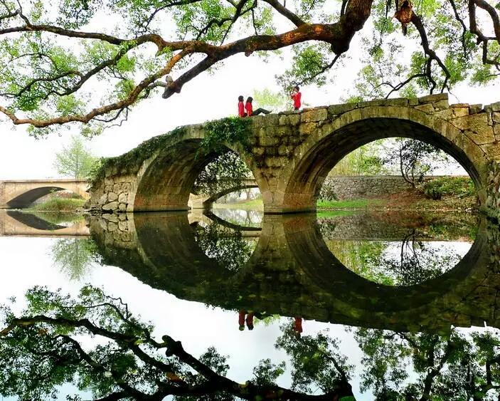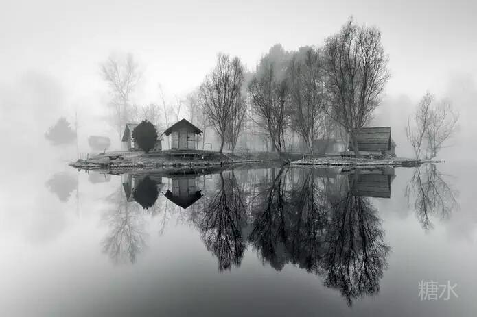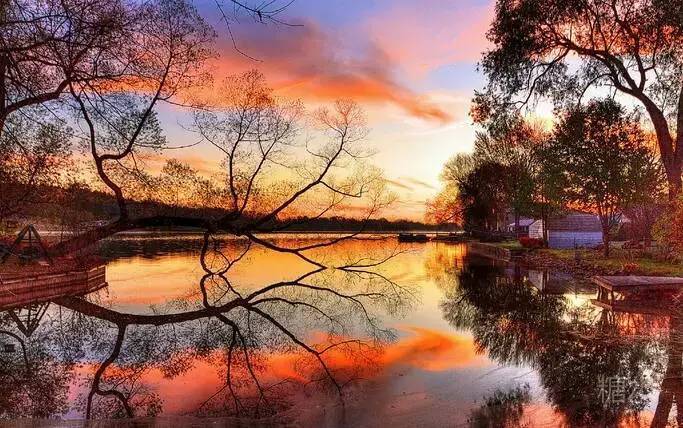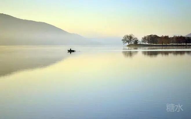 山风虚无水明镜, 晨雾飘渺云淡定。 平湖泛舟慢悠悠, 渔家渐隐黛青屏。 长虹卧波几点红, 氤氲炊烟绕野岭。 水天倒影丹霞蔚, 竹笛雅韵入空灵。