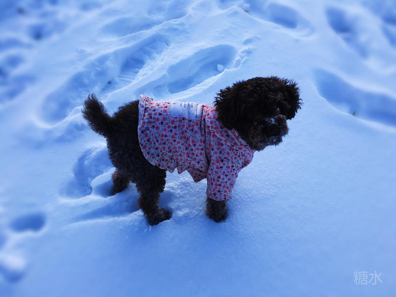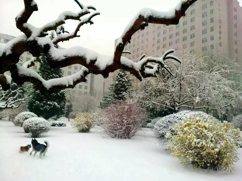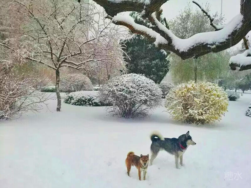 狗狗也尽情的享受着这洁白的世界带来的惊喜,蹦着,跳着,通红的小舌头不停翻滚着,打扫着嘴巴上的雪,一会儿功夫,水珠挂满胡须,一个“白胡子”小狗🐶甚是搞笑^ _ ^