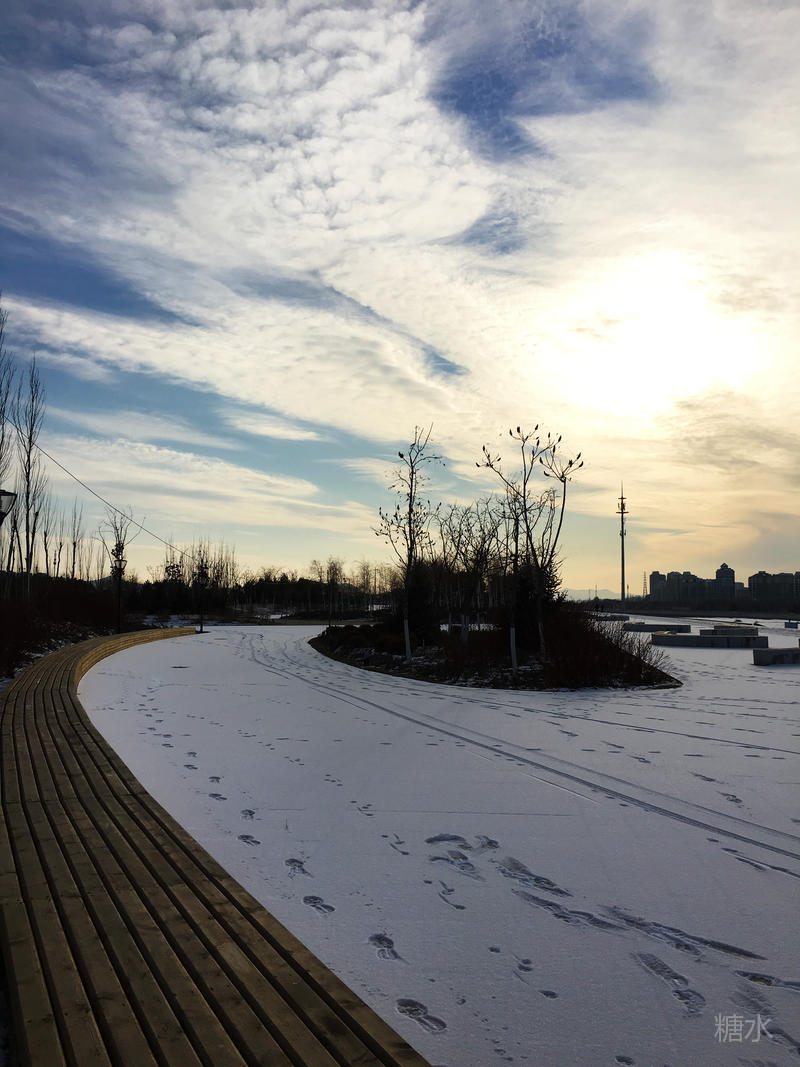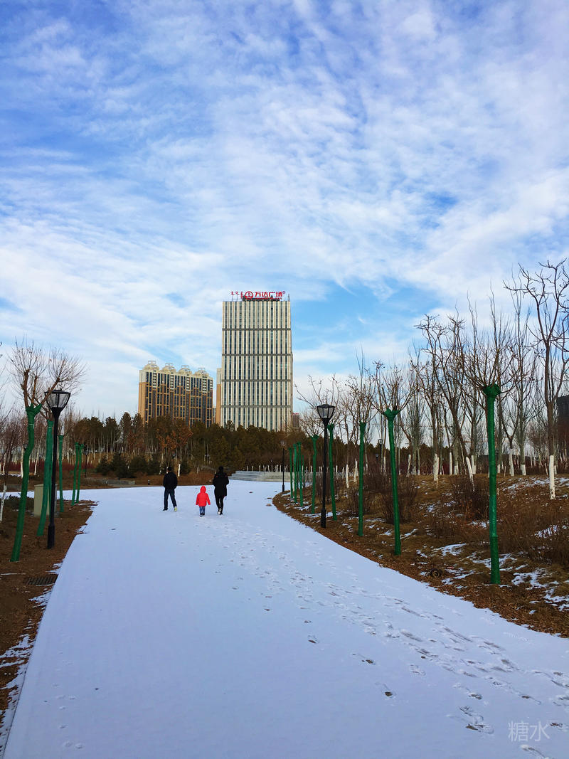 城市里,人们纷纷走出家门,踏雪寻梅,脚底踏出的咯吱声,好似雪地轻柔的言语,令我感到亲切和愉悦!