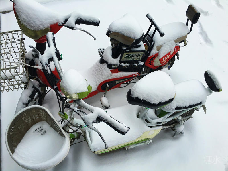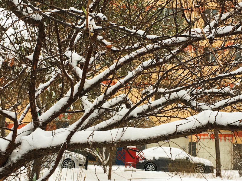 刚落下的雪花❄️,如粉,如沙,撒在地上,车上,房顶上,树上,她们决不粘连,像刚出锅的“大面包”,鼓鼓囊囊的,憨态可爱……