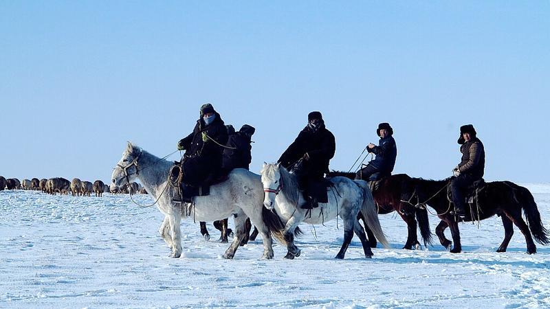 2016年12月新疆阿勒泰哈萨克族牧民、一年一季的冬季畜牧转场进行中🐑🐏🐪🐎🐕