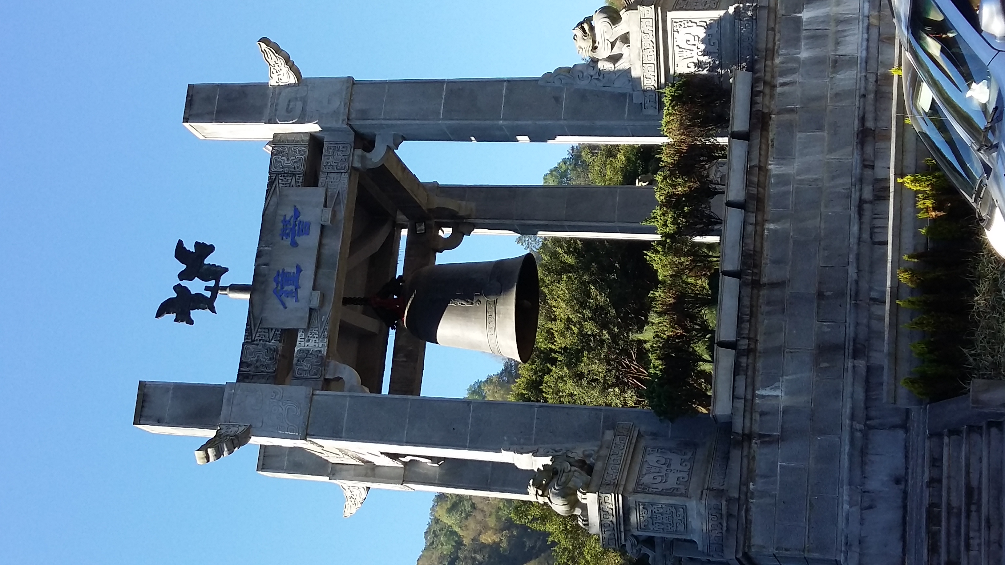 滇西抗战纪念馆的警钟,顶上有两只象征和平的鸽子。纪念馆里陈列了很多当时的照片,配以文字说明,以及国民党远征军、援华美军的用过的物品、武器等。