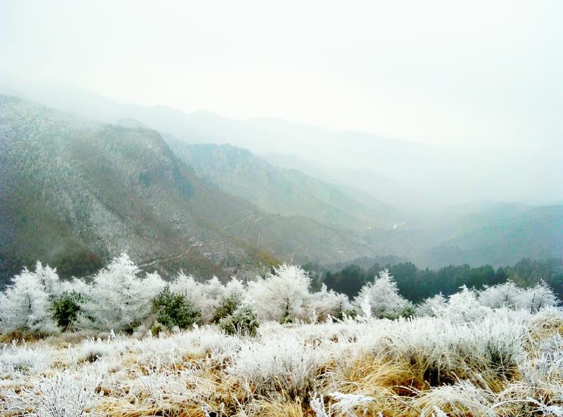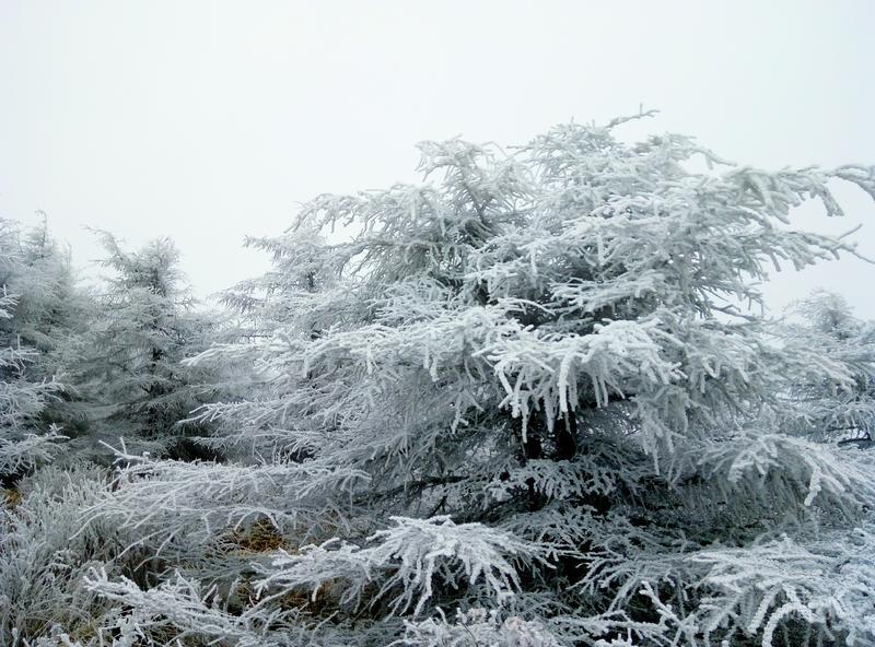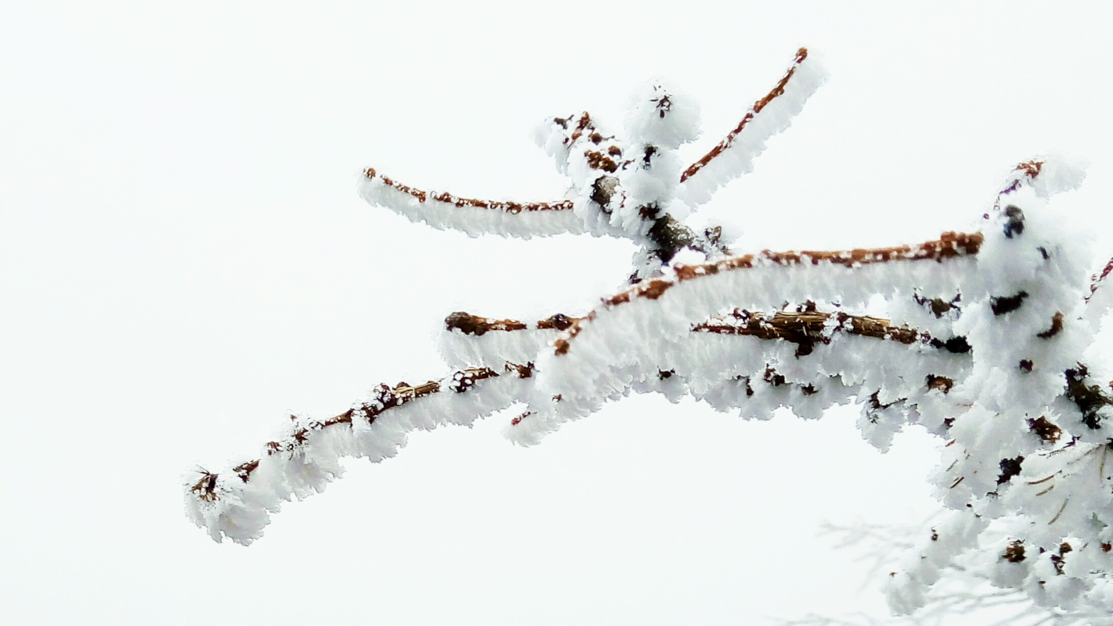 雾松俗称“树挂”,是在有雾的寒冷天气里,雾滴冻结附着在草木和其他物体迎风面的疏松冻结层。