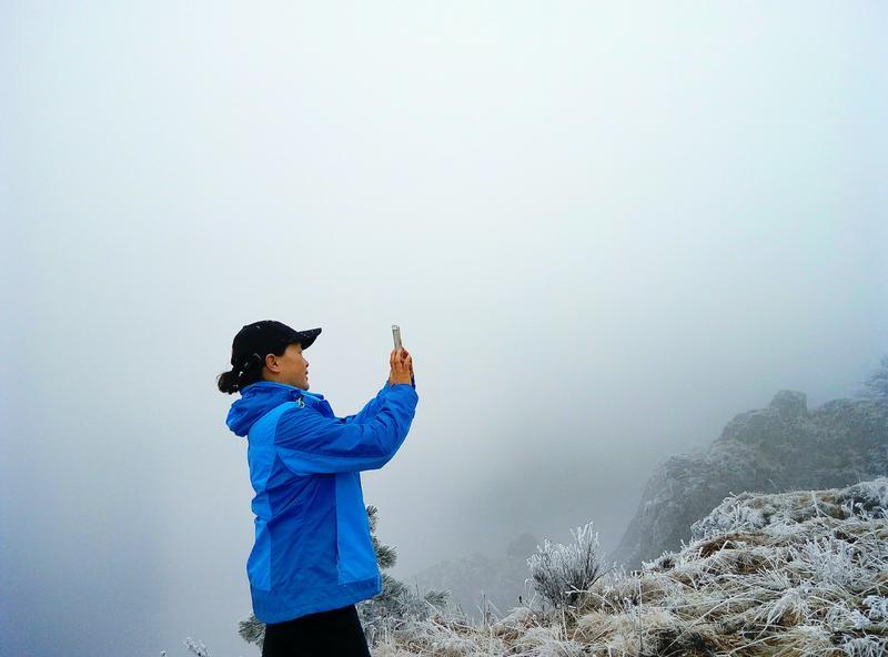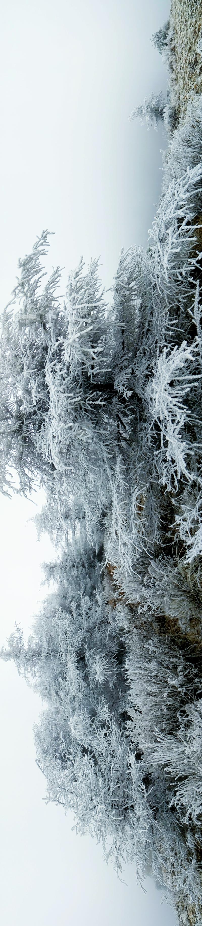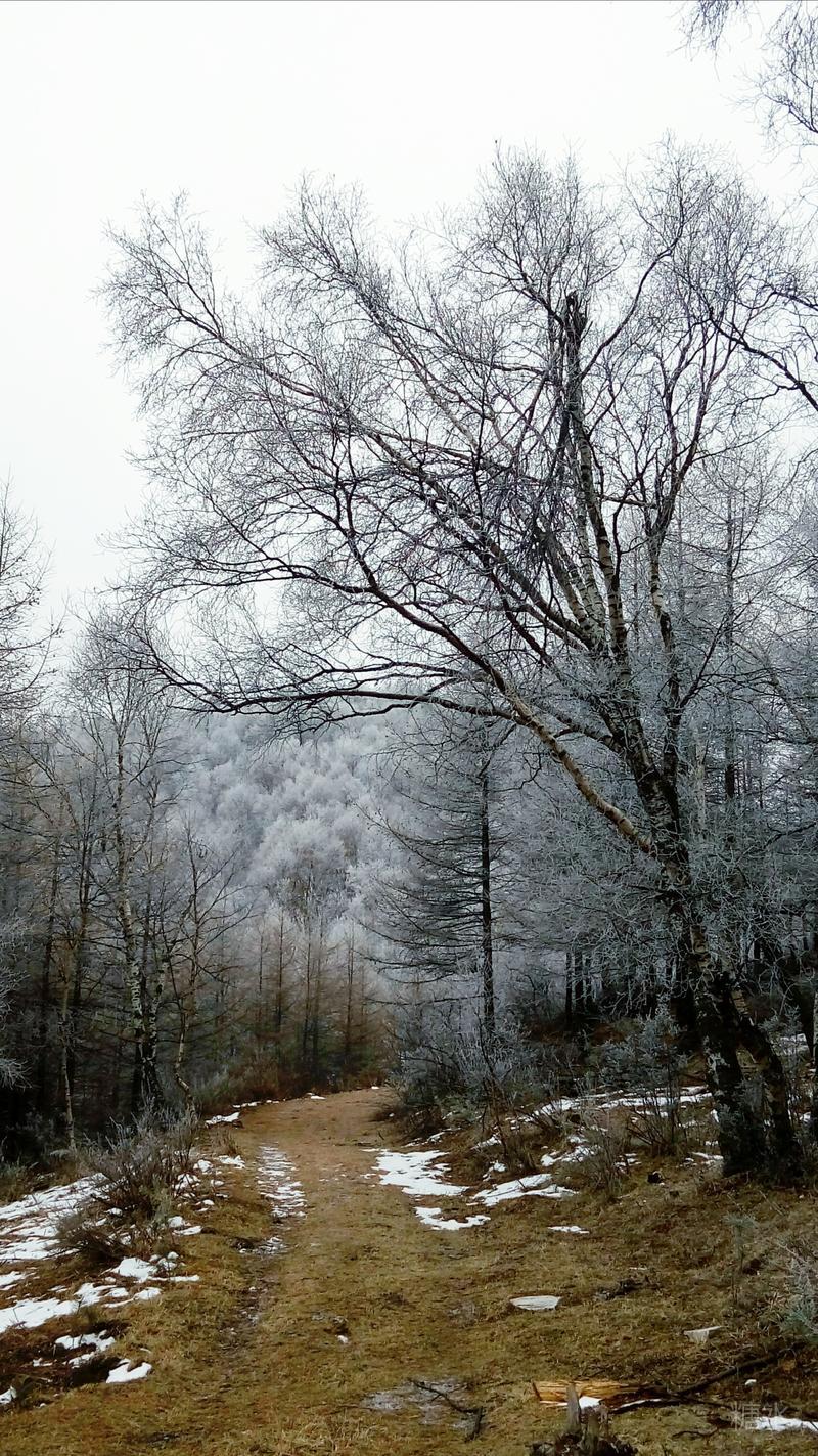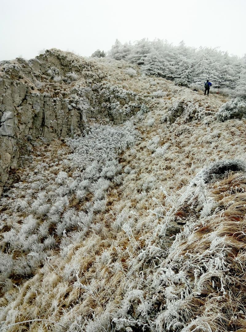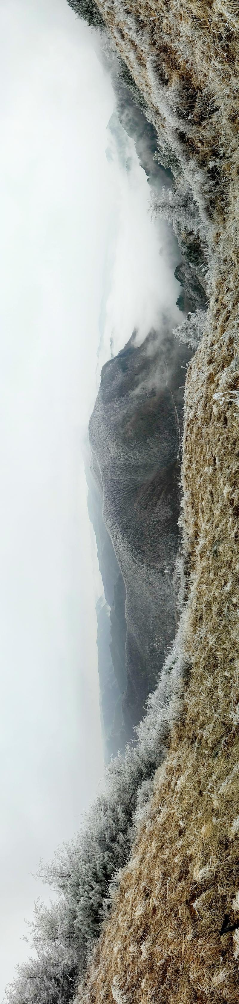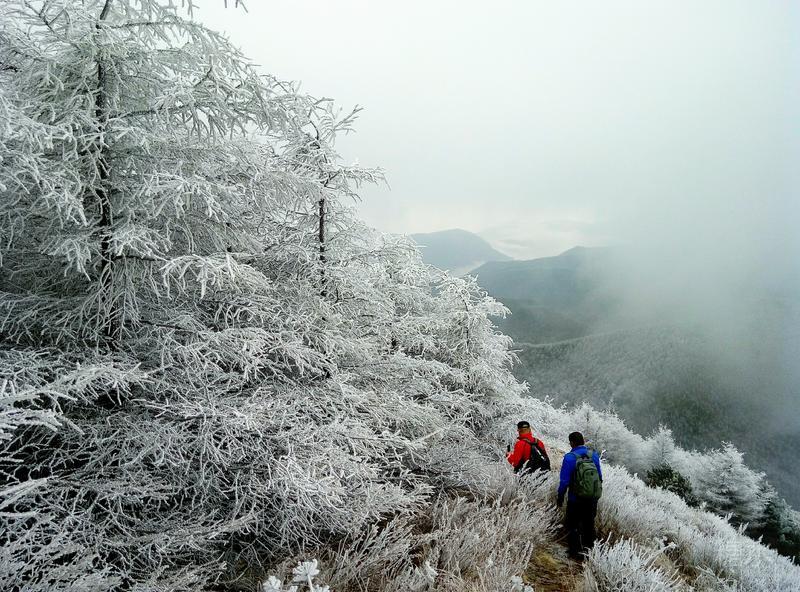 攀爬途中,随着海拔升高,气温下降,树挂也渐渐多了。
