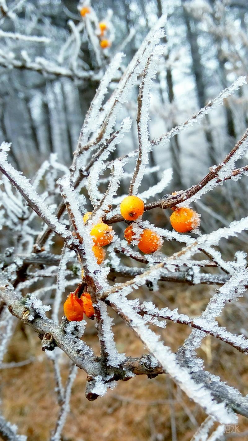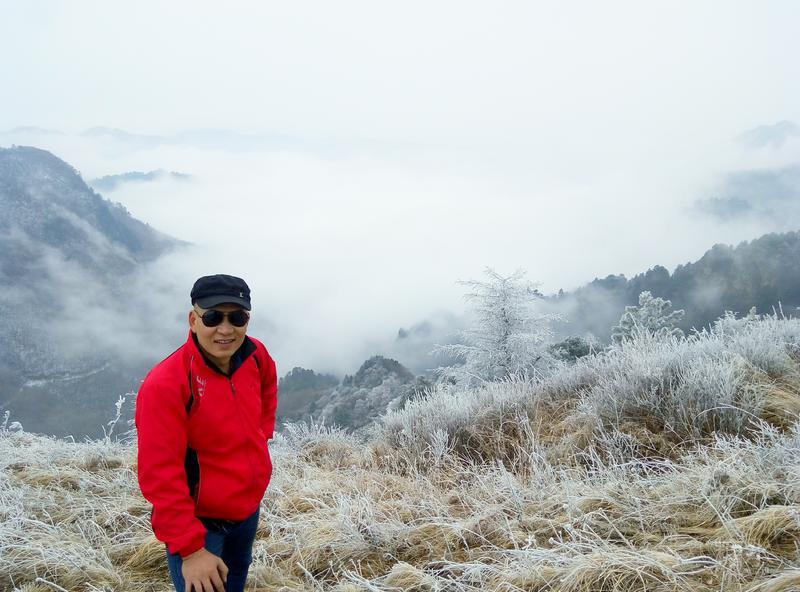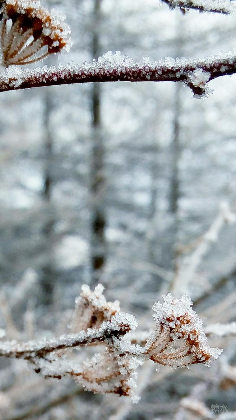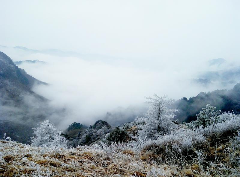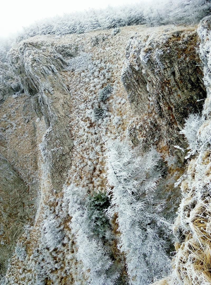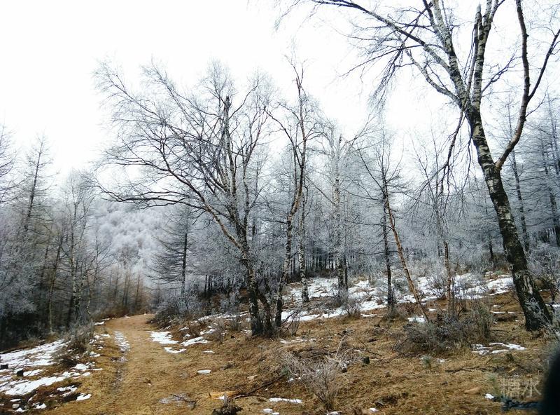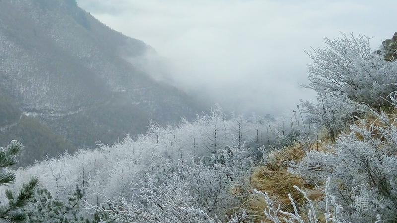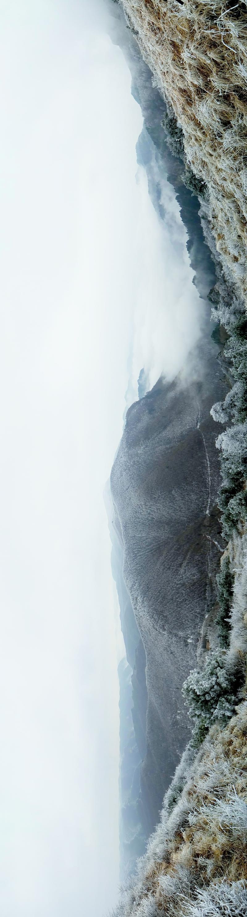 攀爬途中,随着海拔升高,气温下降,树挂也渐渐多了。