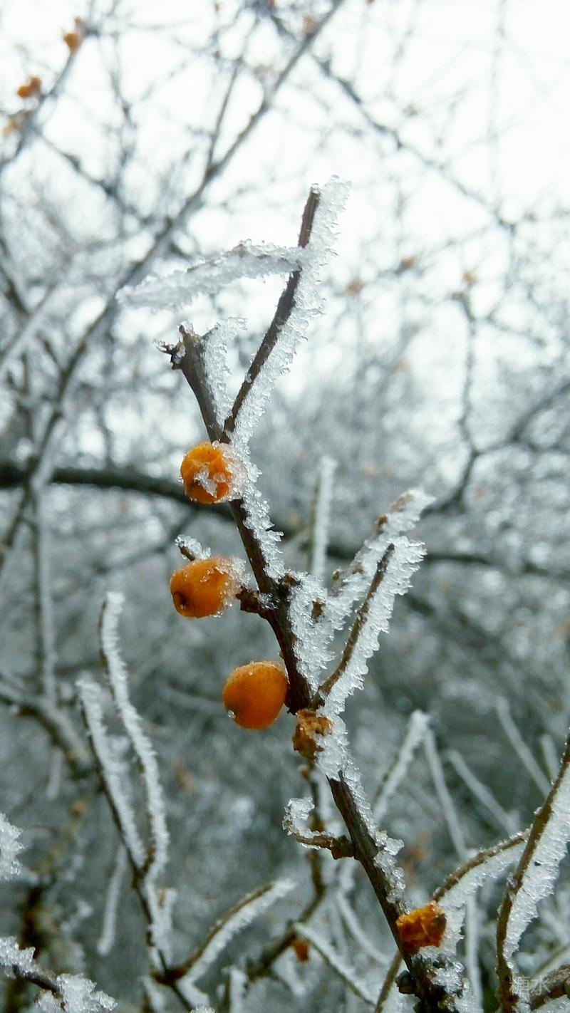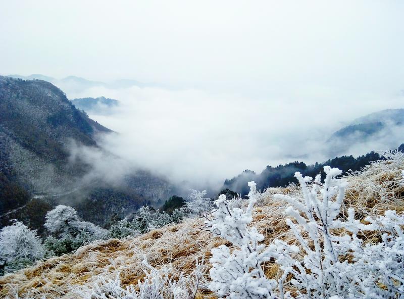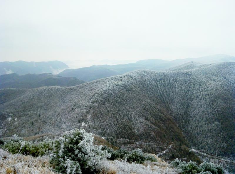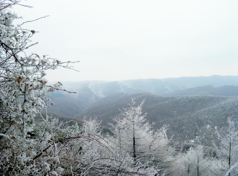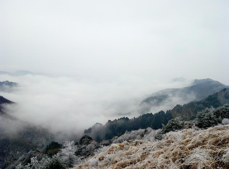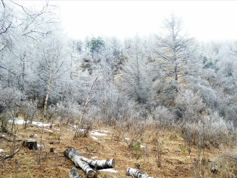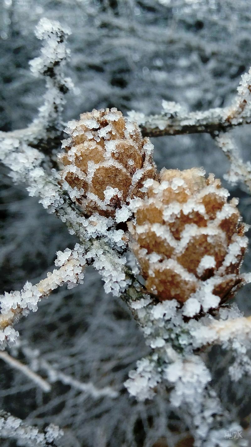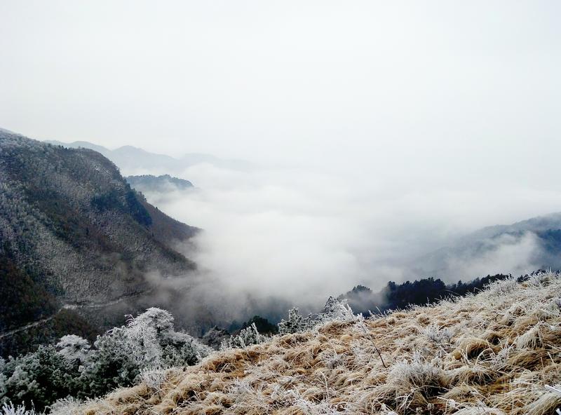 攀爬途中,随着海拔升高,气温下降,树挂也渐渐多了。
