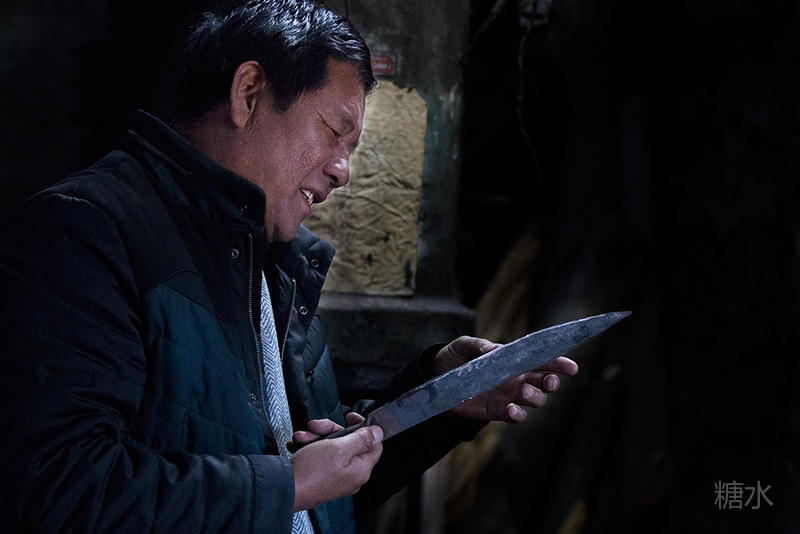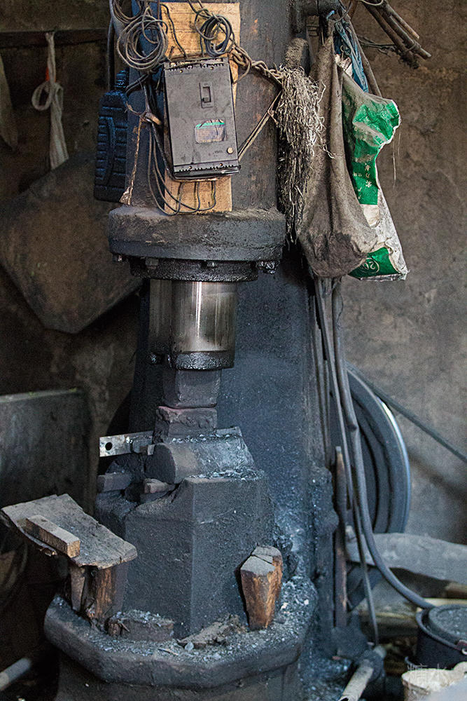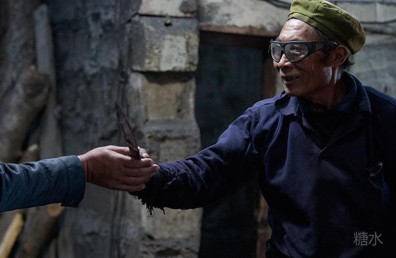 上去交谈,得知老师傅是彝族人,能听懂简单的汉语,虽然不是很流畅,但从断断续续的话语中了解到,曾几何时,布拖县有很多和他一样的铁匠,但随着时间的推移,不少人都放下了手中的铁锤,所以这种手工作坊现在已经很少见了,而他成了为数不多的老铁匠。