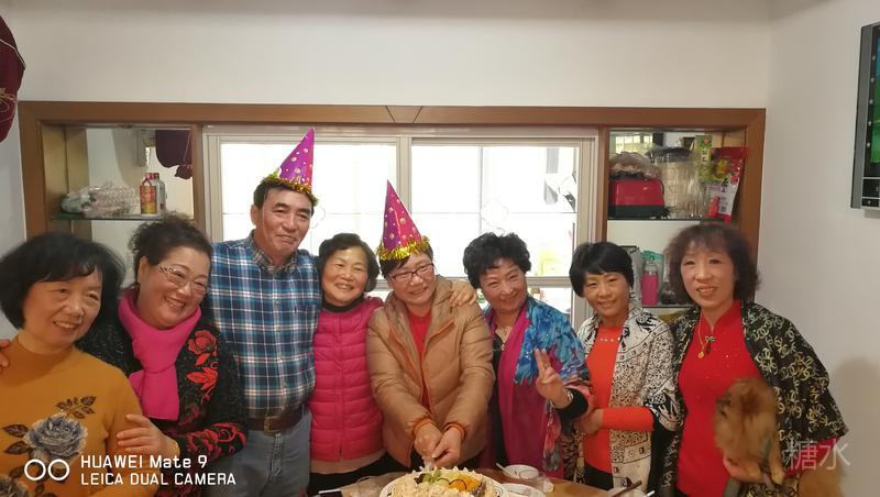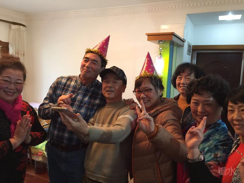 此刻,“祝你生日快乐”的音乐已经开启,歌曲已经唱响。和两位寿星合影,非常高兴。