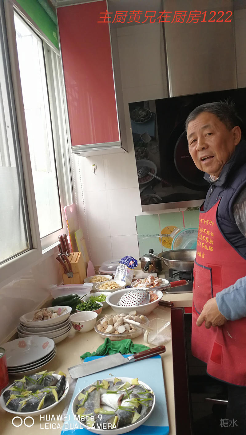 原黄山茶林场三八连副连长————黄兄,会烧一手好菜,是标准的“上海男人”。他们夫妇俩发出邀请,已经有二个多月了,准备了近一个月,忙了三、四天,今天,黄兄当个快乐的主厨,热情好客的主人。