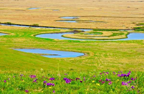 你见过呼伦贝尔大草原,但肯定不知道186彩带河 呼伦贝尔大草原是个风光优美,景色宜人的地方,那里有一望无际的绿色,是人间天堂。呼伦贝尔的美,最美莫过于186彩带河,站在山顶,可以赏尽天与地之间最美的一切,刷新你对美丽的一切定义… 186这个数字只是这里公路的一座里程碑的数字,正赶上这里的山坡上可以俯瞰与俄罗斯交界的河流呈现九曲十八弯的形态,所以确立了这里的名字为186彩带河。