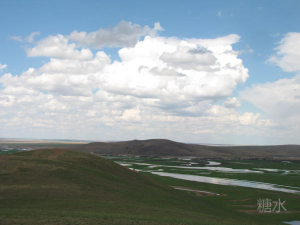 远处,云彩以各种不同形式出现在我们的面前,人仿佛在云层里穿越与跳跃,从某种意义上说,我们就是进入仙境。 当我们在山顶看到美丽的彩带河时,蜿蜒的河水在太阳的光线辉映下,呈现一条彩色的绸带摆在中苏边境上,远处的俄罗斯山峦起伏,承托出一幅美丽的图画。