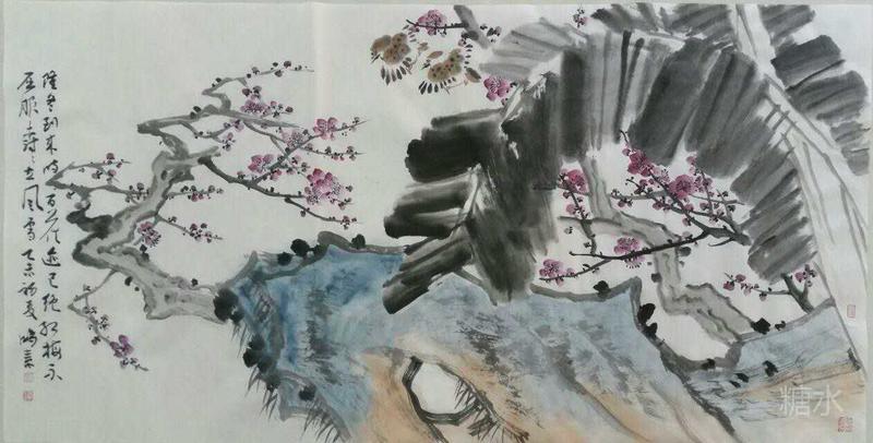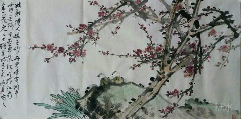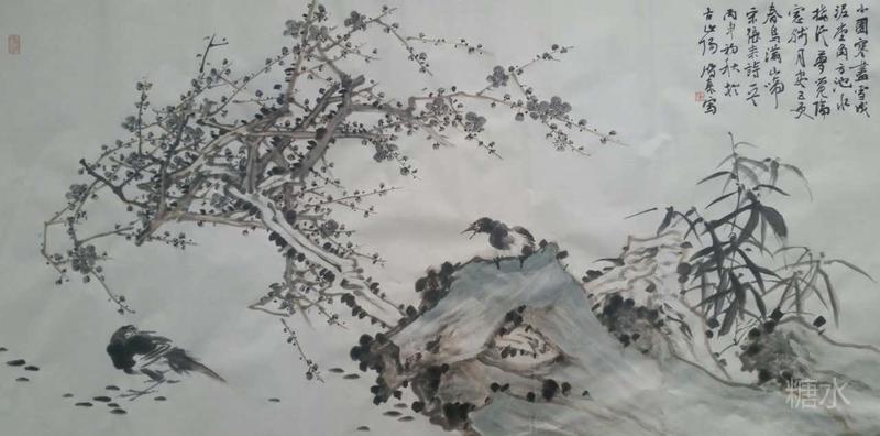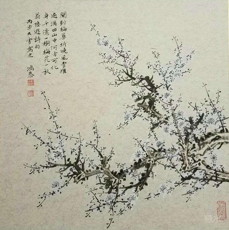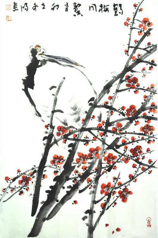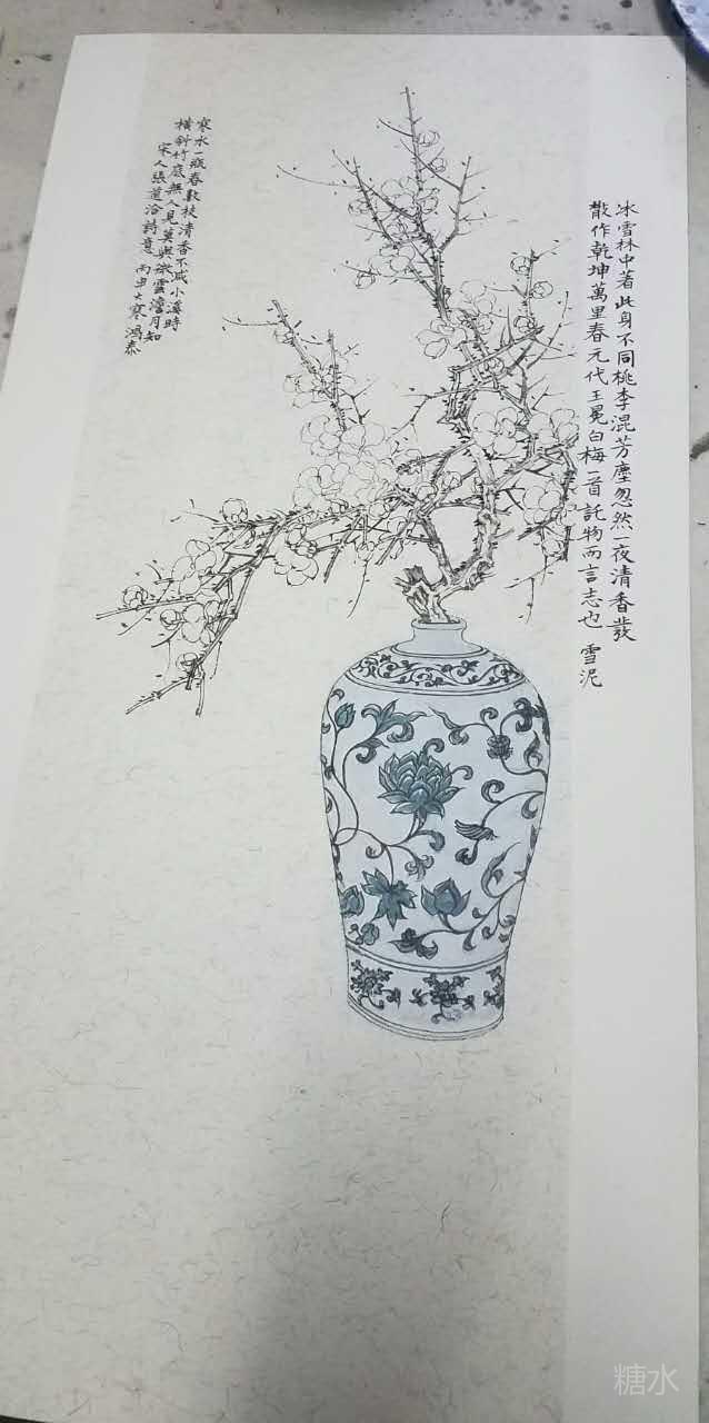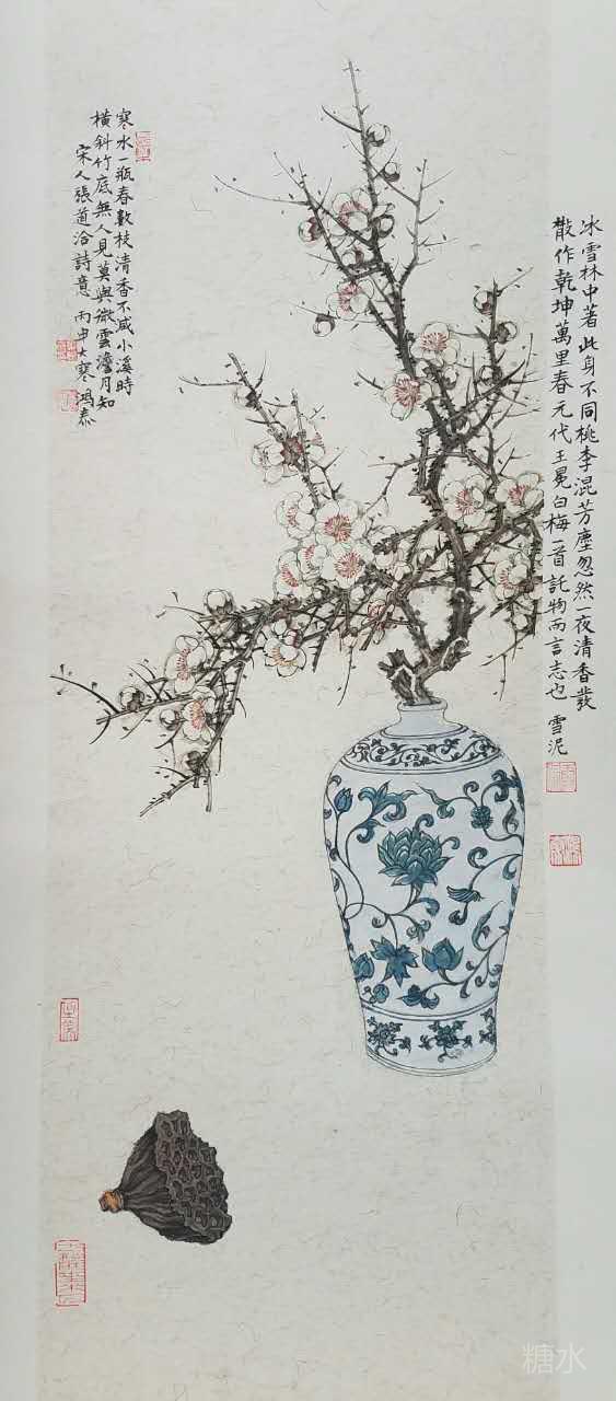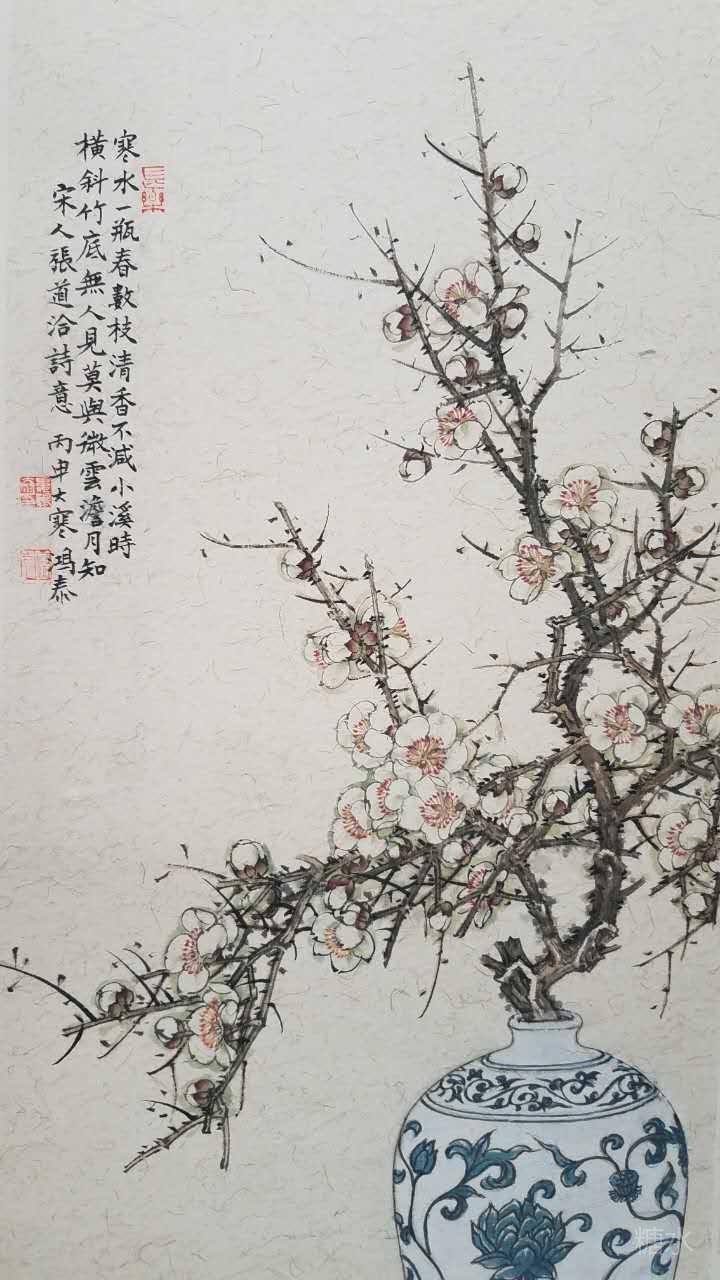 【寒水一瓶春数枝】娄鸿泰作 66×29.5cm 卡纸