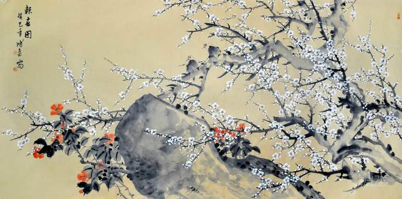 【暗香浮动月黄昏】138×70c70cm 宣纸
