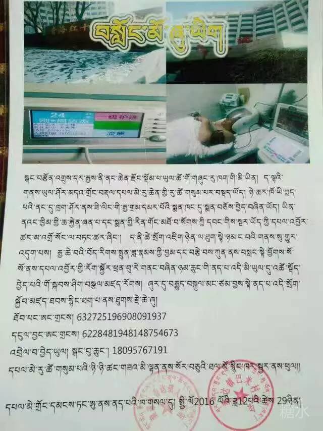 སྒང་བརྩོན་འགྲུས་དར་རྒྱས་ནི་ནང་ཆེན་རྫོང་སྡོམ་པ་ཞང་གོ་གཞུང་རུ་ཁག་གི་མི་ཡིན། ཉེ་ཆར་ཁོ་ཡི་ཀླད་པའི་ནང་དུ་ཁྲག་སོང་སྟེ་ཟི་ལིང་གི་རྒྱ་གྲམ་དམར་པོའི་སྨན་ཁང་ནང་དུ་སྨན་བཅོས་བྱེད་བཞིན་ཡོད། ཡིན་ནའང་ཁྱིམ་གྱི་ཆ་རྐྱེན་ཞན་པ་དང་སྨན་གྱི་རིན་གོང་མཐོ་བ་སོགས་ཀྱི་དབང་གིས་སྔར་ཡོད་ཀྱི་དཔལ་འབྱོར་ཚང་མ་འགྲོ་སོང་བཏང་ཚར་ཞིང་། ད་ནི་ཚེ་སྲོག་གི་འཇིག་ཉེན་ལ་ཐུག་སྟེ་སྐྱི་གཡའ་བའི་གནས་སུ་གྱུར་འདུག་པས། རྒྱ་ཆེ་བའི་བོད་རིགས་སྤུན་ཟླ་རྣམས་ཀྱིས་སྙིང་རྗེའི་ལགས་ཟུང་རིང་དུ་བརྐྱང་སྟེ་ཕྱོགས་སོ་སོ་ནས་དཔལ་འབྱོར་གྱི་རོག་སྐྱོར་ཕྲན་བུ་རེད་གནང་བཞིན་ཉམ་ཆུང་གི་ནད་པ་འདི་མི་ཡུལ་དུ་འཚོ་སྡོད་བྱེད་པའི་གོ་སྐབས་ཤིག་བསྩལ་མཛད་རོགས། ཐུགས་རྗེ་ཆེ། ཞོར་དུ་བརྒྱུད་བསྐུར་མང་ཙམ་བྱས་ཏེ་ནད་པ་འདི་འཆི་ཉེན་ལས་དགྲོལ་ཐུབ་པར་སྙིང་ཐག་པ་ནས་ཐུགས་རྗེ་ཆེ་ཞུ།