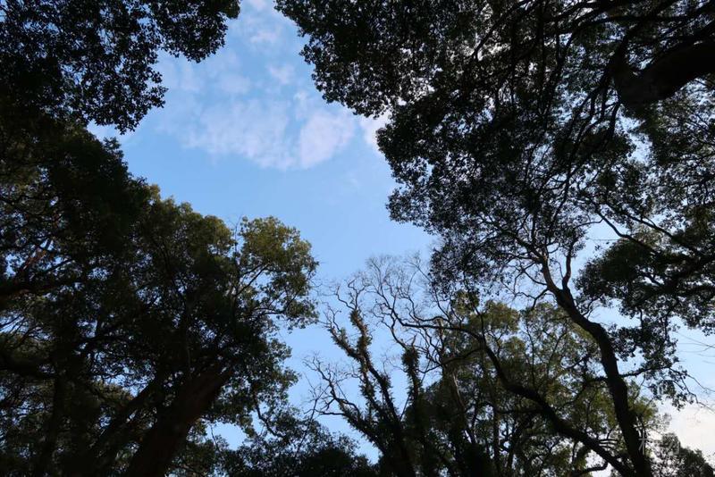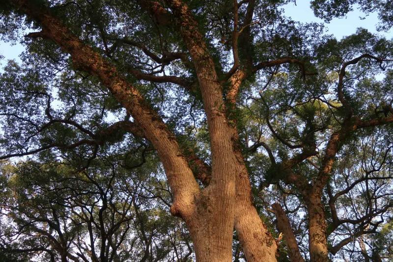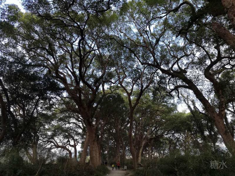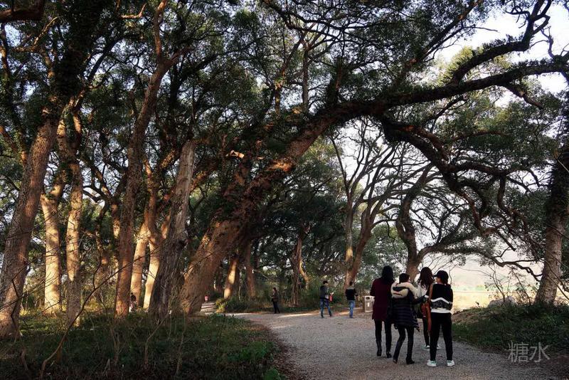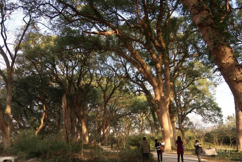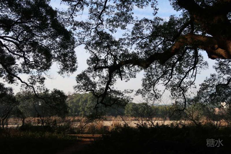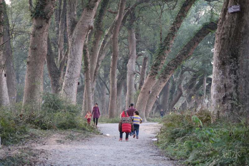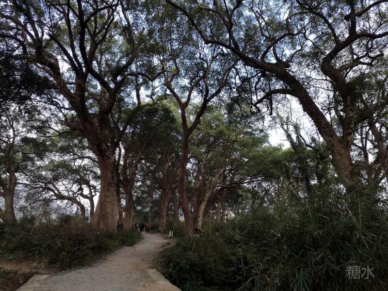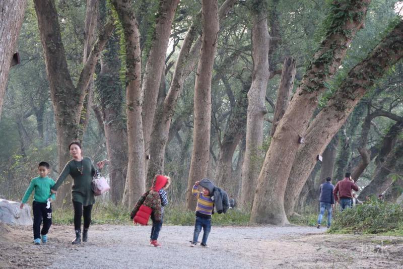 走進密密的樟樹林,高聳入雲的香樟,連枝落木成根,形成天然深幽的氧吧。