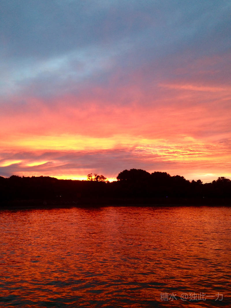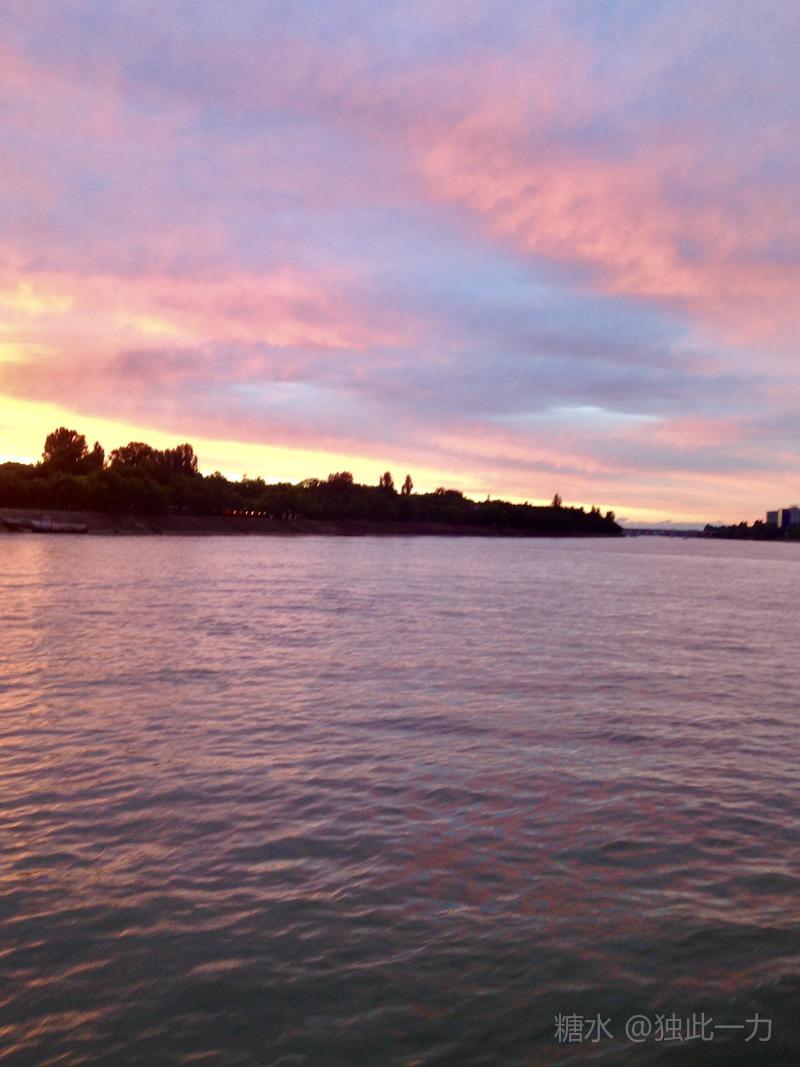 夕阳西下,火红的太阳跌落进滚滚多瑙河,绚丽的晚霞染红了整个天空、整条多瑙河!蔚为壮观!