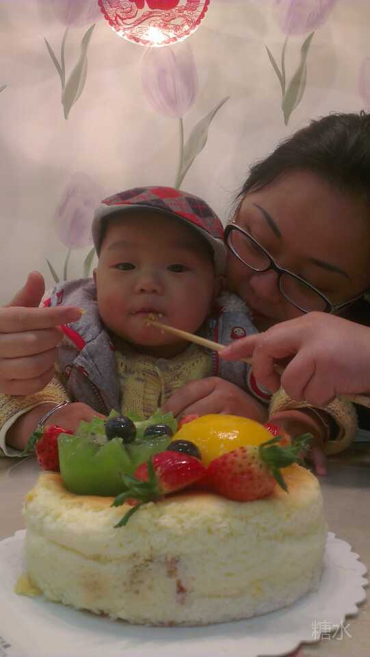 俺终于过生日啦!第一次吃手抓蛋糕/满嘴满手都希歪歪的,俺娘也不管我,她咋想滴勒?