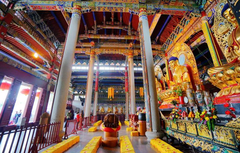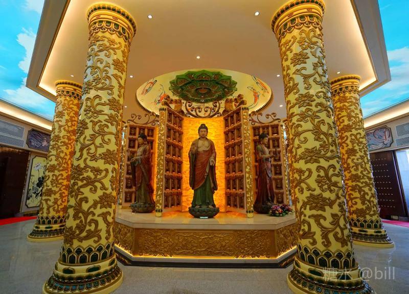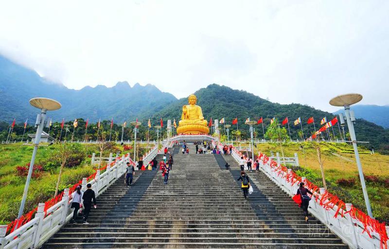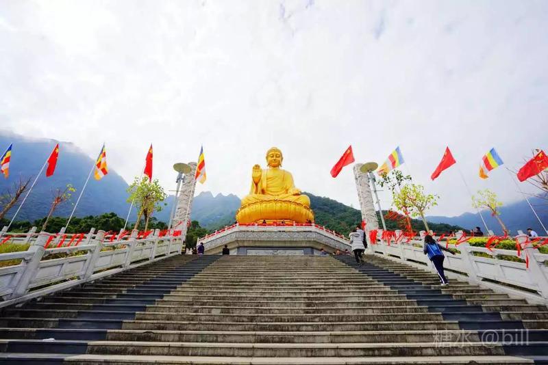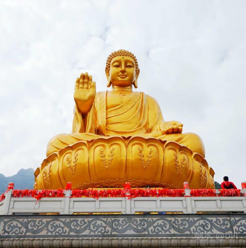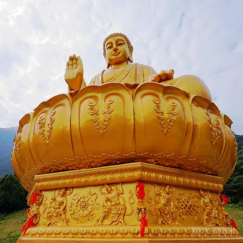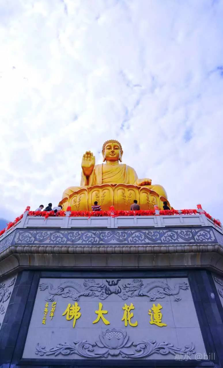 鸡鸣寺的莲花大佛铜像 ~ 基座择于本寺大雄宝殿之南畔,位居“巽”方之“文笔峰”,以象征文运亨通,永昭文明发达。因大佛耸立于粤东名胜莲花山之中,故名「莲花大佛」。大佛(含基座)通高9.98米,以青铜铸造。大佛建设地基用地面积约2500平方米,以古典艺术精粹而筑建,古雅朴素,造型优美细。