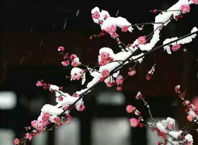 题梅雪图 凌寒仙子下瑶台, 为践盟言大步来。 雪嫁梅花成绝色, 梅迎白雪俩无猜。