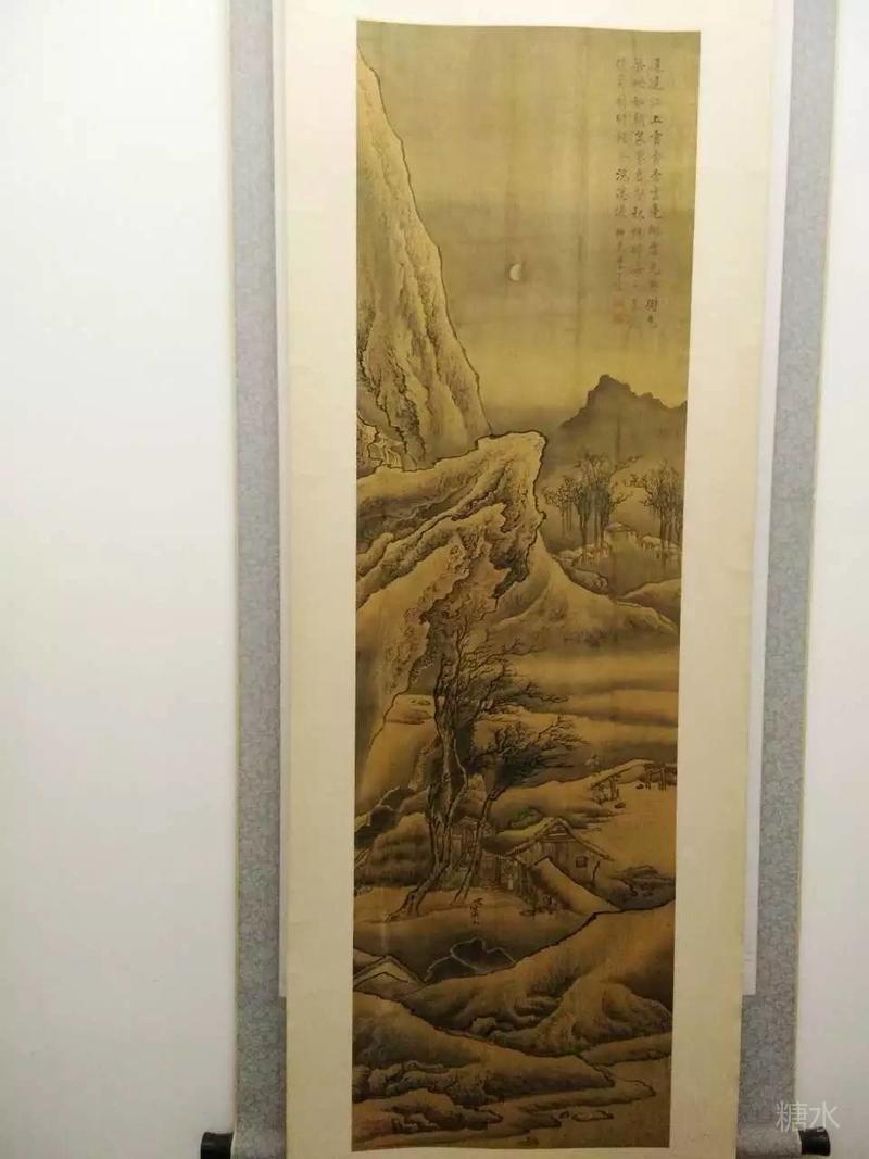 厚重的艺术家族,传承之文化精趣。 王宸的六世祖王时敏官至太常寺少卿,故称王奉常。二十四岁时,因“恩荫”任掌国家印信等事的尚宝丞官职,曾奉命到山东、河南、江西、福建等地巡视封藩,借此游历了名山大川、观赏了各地名家收藏的珍品,并同艺林前辈董其昌、陈继儒等经常接触,为他以后在绘画上的艺术成就打下了重要基础。晚年又专心致志于教育年轻一代的艺术家,培养出王翚、吴历、恽寿平及他的三儿子王撰,还有孙子王原祁等一批知名画家。王原祁是王宸曾祖,自幼聪慧好学,可过目成诵,十五岁考中秀才,二十岁同祖父学画,王时敏看到他的作品时说“元季四家,当推子久(黄公望)。得其神者,唯董宗伯(其昌);得其形者,予不敢让;若形神具得,吾孙其庶乎!”可见青年时的王原祁在艺术上已是才华出众,加上其在政治上的地位,使追随和拜他学习的人越来越多,形成一个声势浩大、几乎独霸一时的绘画流派——娄东派。娄东派的画家很多,王宸便是其中的一位代表,他在继承家学方面,不但刻苦努力,还深得精髓。今人童书业评价王宸“用笔厚重,用墨干枯得麓台沉着之妙”。我们从陈铭先生收藏的此画中也可以窥见王宸绘画用笔、用墨的功力和文人家学的思想情绪。 此幅绢画画心长130Cm,宽38Cm。