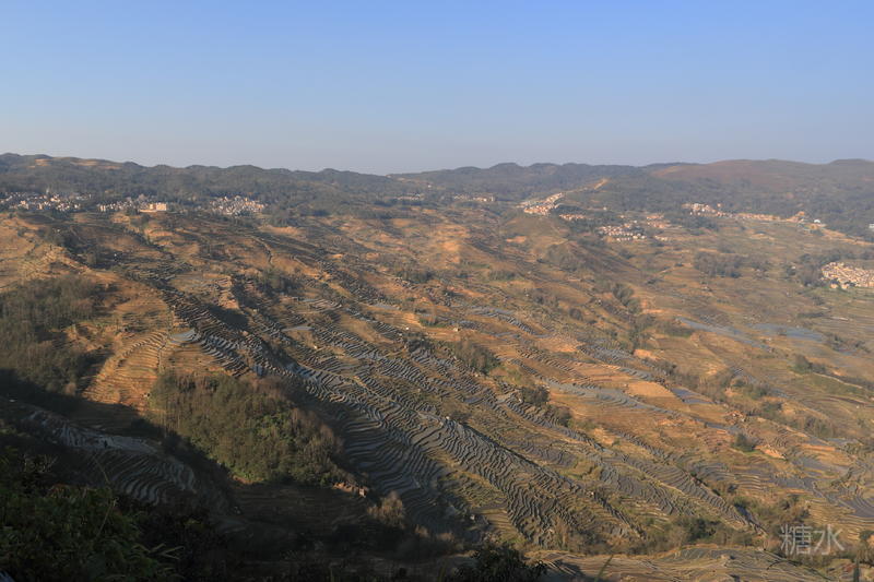 无云的天空也有一丝遗憾。少了云层,也就少了色彩变化。拍出来的梯田色彩稍显单调。