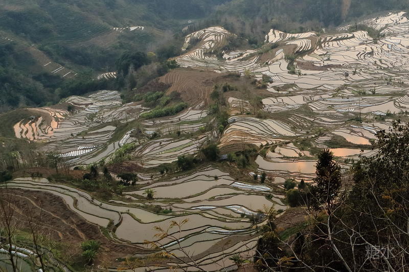 2月22日下午赶到元阳老虎嘴梯田景区时,离太阳落山只剩半个多小时。景区早已人头攒动,照相机长枪短炮对着日落和梯田方向,嚓嚓响个不停。我们赶紧挤个位置,架起三脚架,期盼在有限的时间里,能拍到几张心仪的梯田照片。