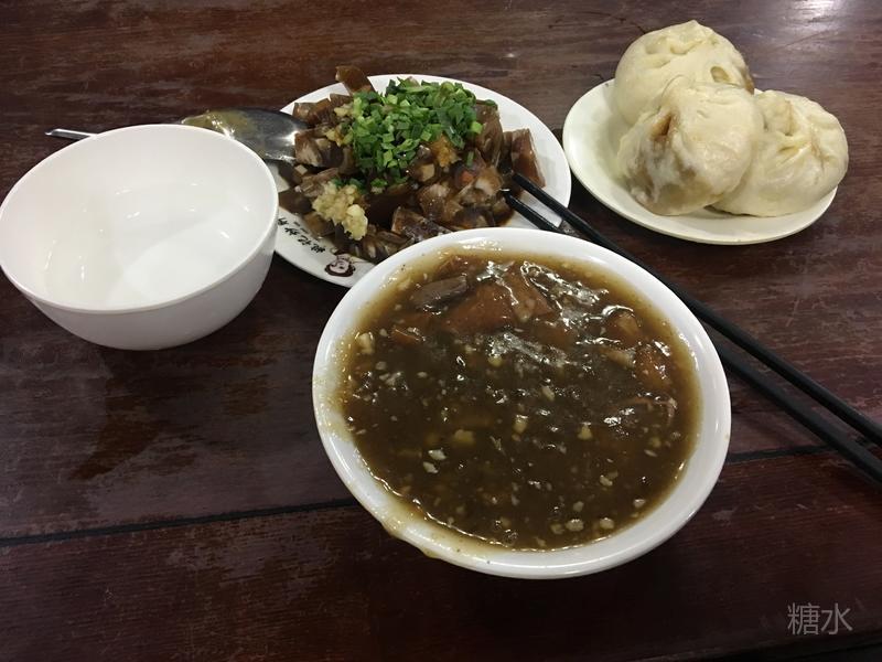 我的晚餐:炒肝、包子、豆酱、二两白干(散装)