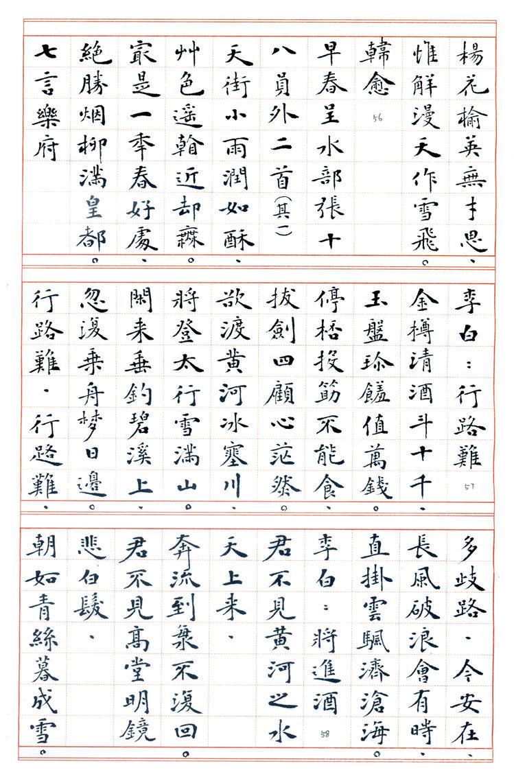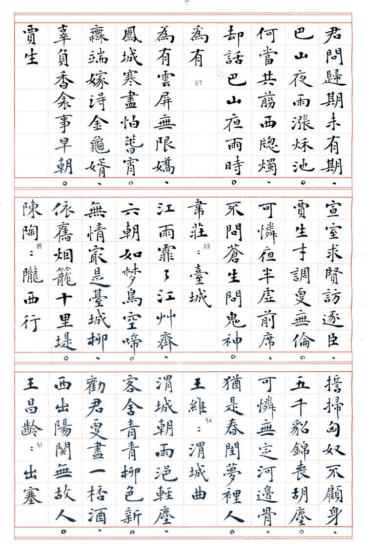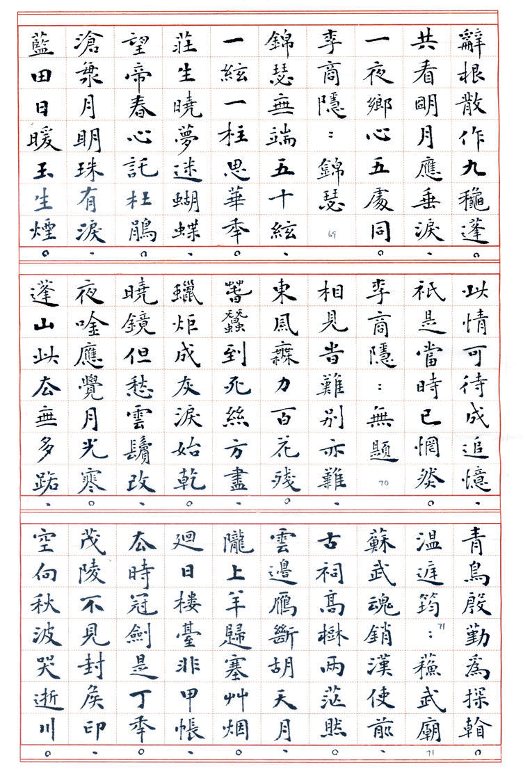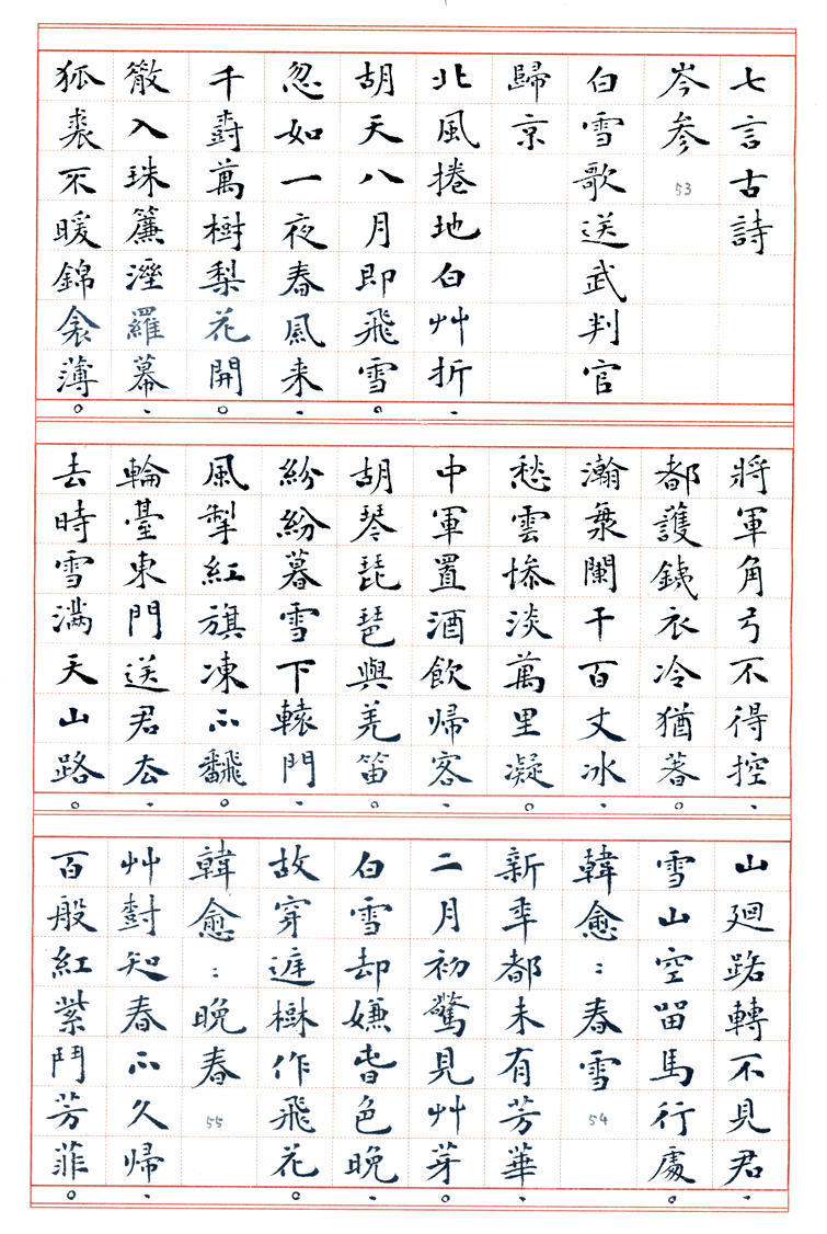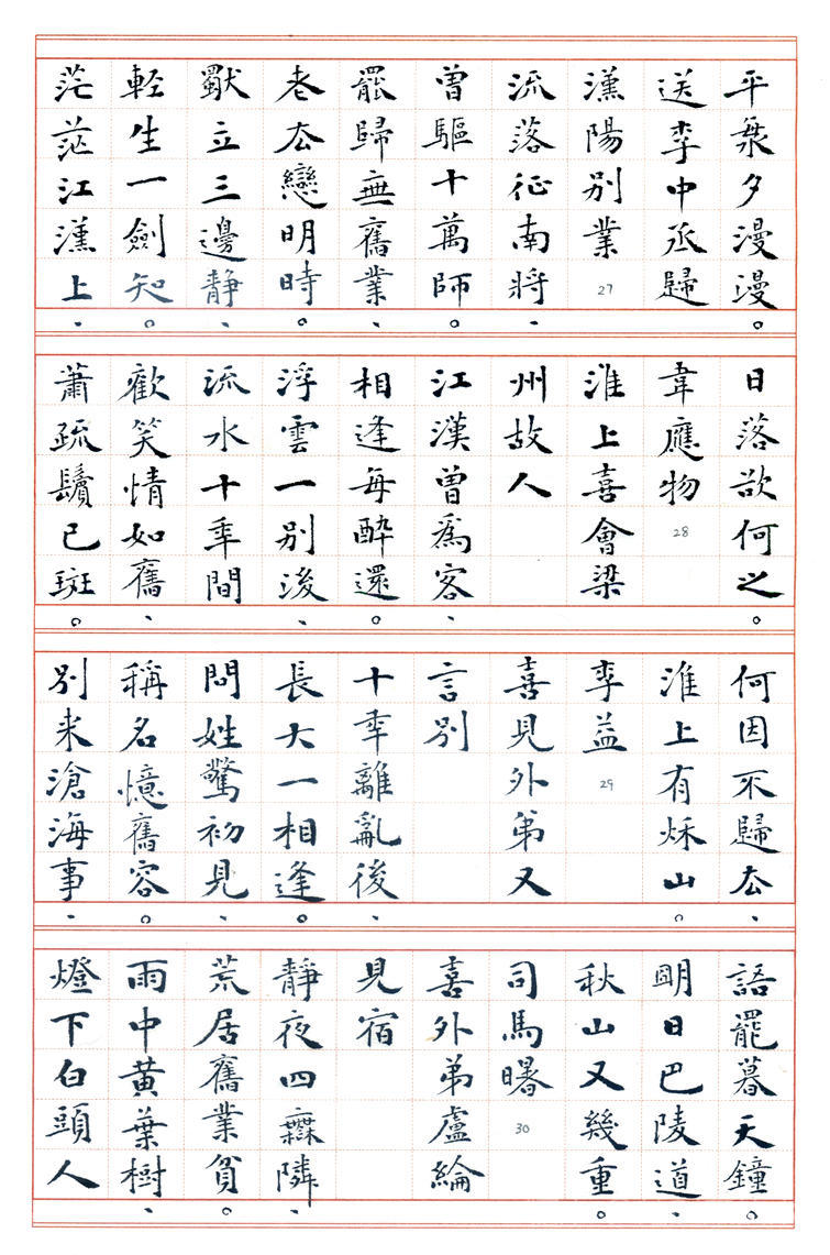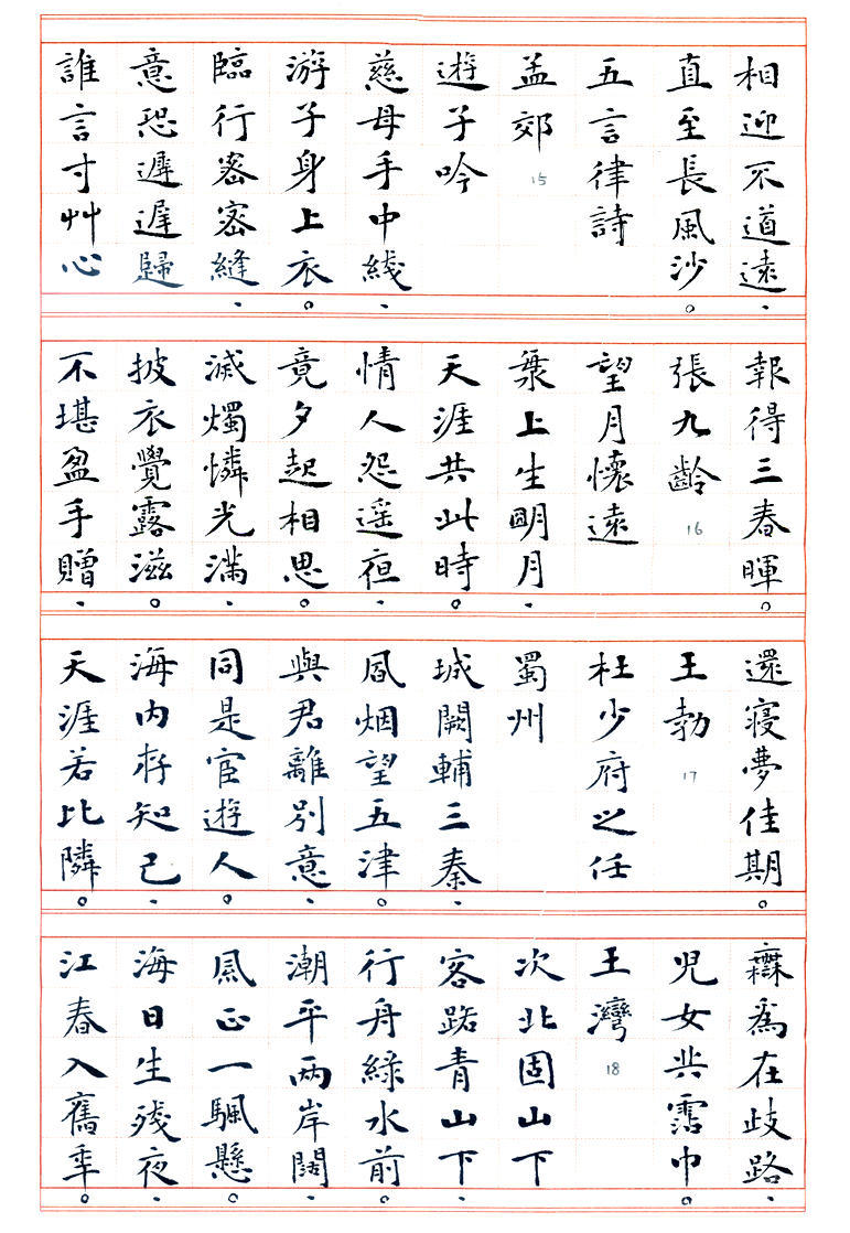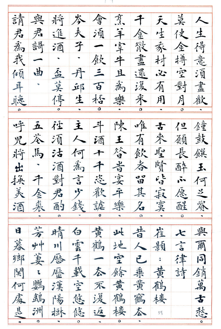 书法: 丁兴才,1939年生。六岁学书,初宗唐楷,曰课千字,历数年而不缀。参加多届全国书展,1986年加入中国书协的早期会员,现为山东羲之书法艺术研究院艺术顾问。1989年应邀赴日举办书展,赢得盛誉。曾获多项奖项和荣誉,荣获德州市委市府授予的《德艺双馨老艺术家》奖。 丁老书路广阔,真、草、隶、篆均善,尤以小楷见长,出版有多部《丁兴才书集》以及手书精印线装版《唐诗一百首》、《唐诗三百首》、《宋词一百首》等著作。已故中国书协副主席刘炳森先生赞扬“其书风浑厚蕴藉,楷书园润流畅,隶书古朴遒劲,行草书婀娜多姿”。原中国书协研究部主任张荣庆先生赞誉“先生兼能诸体,深见功力,真所谓冰冻三尺非一日之寒也。尤其小楷,更称精到”。 丁老现年78岁高龄,始终为人谦和,博学苦练,爱字若狂。其字质朴无华,兼纳乾坤,即蕴含着坚毅、果敢和工整,又富有沉静、飘逸和进取,结字造型或倚或正,或重或轻,柔者如细雨之润,劲者若雷霆之势,行笔迅捷,发力凝重,运笔变化多端,若脱缰骏马腾空而来,又如驾云蛟龙飞天而去,赋予墨迹以强大的生命力。 诗文/制作:站起来的水 2017年3月