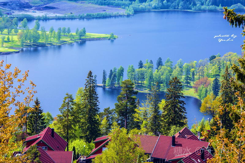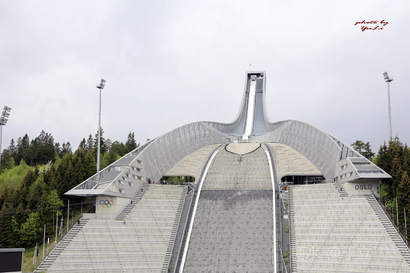 霍尔门科伦跳雪台,高84米,长126米,是世界最高的跳雪台,高高耸立在海拔371米的霍尔门科伦山上,恰似一只展翅欲飞的大鹏,气势磅礡。跳雪的全称是跳台滑雪,是起源于挪威的体育运动,霍尔门科伦跳雪台就是这项运动的标志,1952年曾在此举行第六届冬奥会。 跳雪台的上部斜刺向天空,脚着特制滑雪板的运动员由电梯输送到顶部。比赛时运动员沿着跳台的倾斜助滑道下滑,借助速度和弹跳力,使身体跃入空中,在空中飞行约4-5秒钟后,落在山坡上,比赛成绩由姿势分和距离分组成。1892年时,霍尔门考伦跳雪台规模很小,跳雪的最好成绩只有21.5米。1981年,为举办次年的世界跳雪锦标赛,霍尔门考伦跳雪台进行了重建,使锦标赛创造出了109.4米的纪录。 在霍尔门科伦山上观赏风景。霍尔门科伦山海拔371米高,位于奥斯陆东北约13公里处,风景优美,环境宜人,是挪威的滑雪圣地。在奥斯陆有一句话叫做:不上霍尔门科伦山,等于没到过奥斯陆。