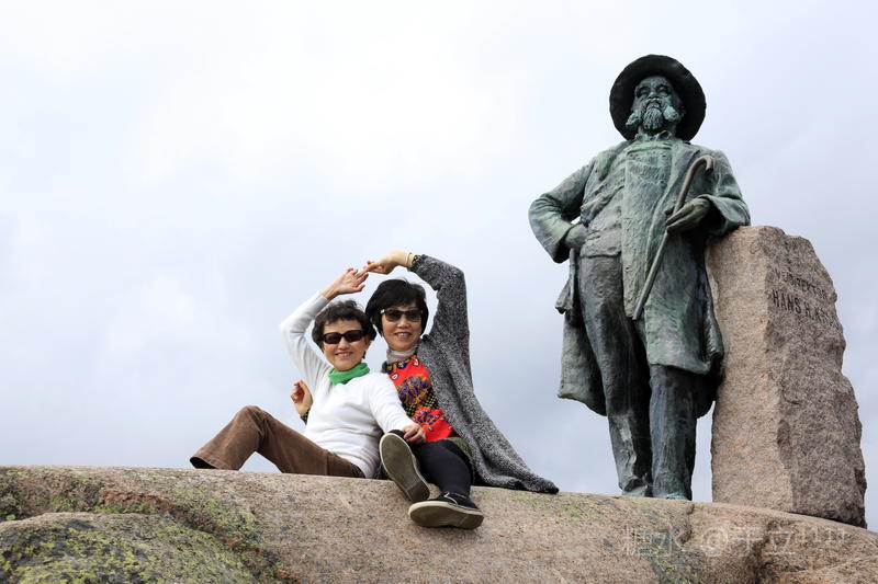 然而,毕竟雕塑是历史,是史诗,是梦想。 风景也只是风景,心情处境不同,风景也会变色。 活生生的挪威人才是现实,我在山妖的故乡,看到的亦是百味人生: 有纯洁的白衣信徒,有休闲的红衣女郎,也有为生存卖唱的独眼忧郁老汉和吆喝着卖什么的沿街姑娘。