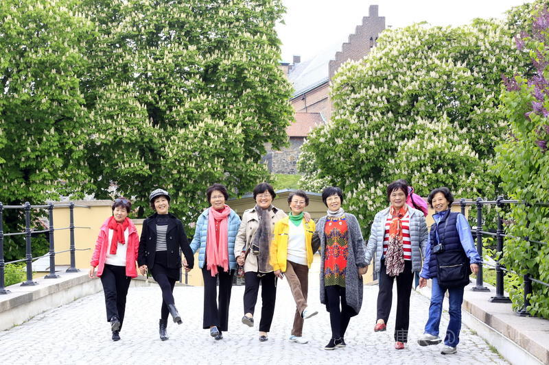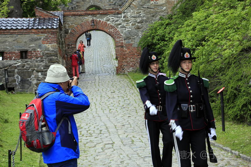 阿肯修弗斯城堡是十三世纪挪威的王宫和防御城堡,位于奥斯陆市区的东南部,奥斯陆湾的北岸。 阿肯修弗斯城堡于1299年由古代挪威国王哈康五世下令兴建后,在挪威与邻国的多次战争中,俨然是一座坚不可摧的海防要塞。挪威王哈康六世还曾将这座城堡作为他的王宫。 1527年,城堡遭遇大火烧毁,随后荒废了好多年。17世纪初,在挪威归属丹麦统治的年代,热衷于战争、女人和建筑的丹麦国王克里斯蒂安四世予以重建、改建,便有了今天这座具有典型文艺复兴风格的宏伟城堡。 我们穿行在其中,就好象穿行在挪威的历史中。而古老的城堡邂逅了焕发青春活力的中国大妈们,仿佛也在五月的春天里兴高采烈。