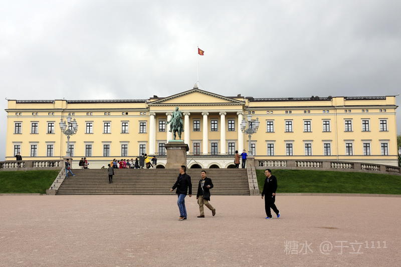 在山妖们的首都,王宫和所有政府大楼建筑都成了游人眼中的风景。 挪威王宫是挪威最著名的标志性建筑之一,是挪威国王的办公地和寓所,位于奥斯陆的中心部位,面对着奥斯陆的主要商业街卡尔.约翰大街。挪威王宫奠基于1825年,落成于1848年,正好赶上新国王奥斯卡一世和他的法国王后约瑟芬的继位登基大典。 挪威王宫的顶上飘扬着红底金狮的皇家旗标,如果旗标上有一个三角形的缺块,那就表示哈拉尔国王此时不在王宫里,由哈康王储暂代国家元首。
