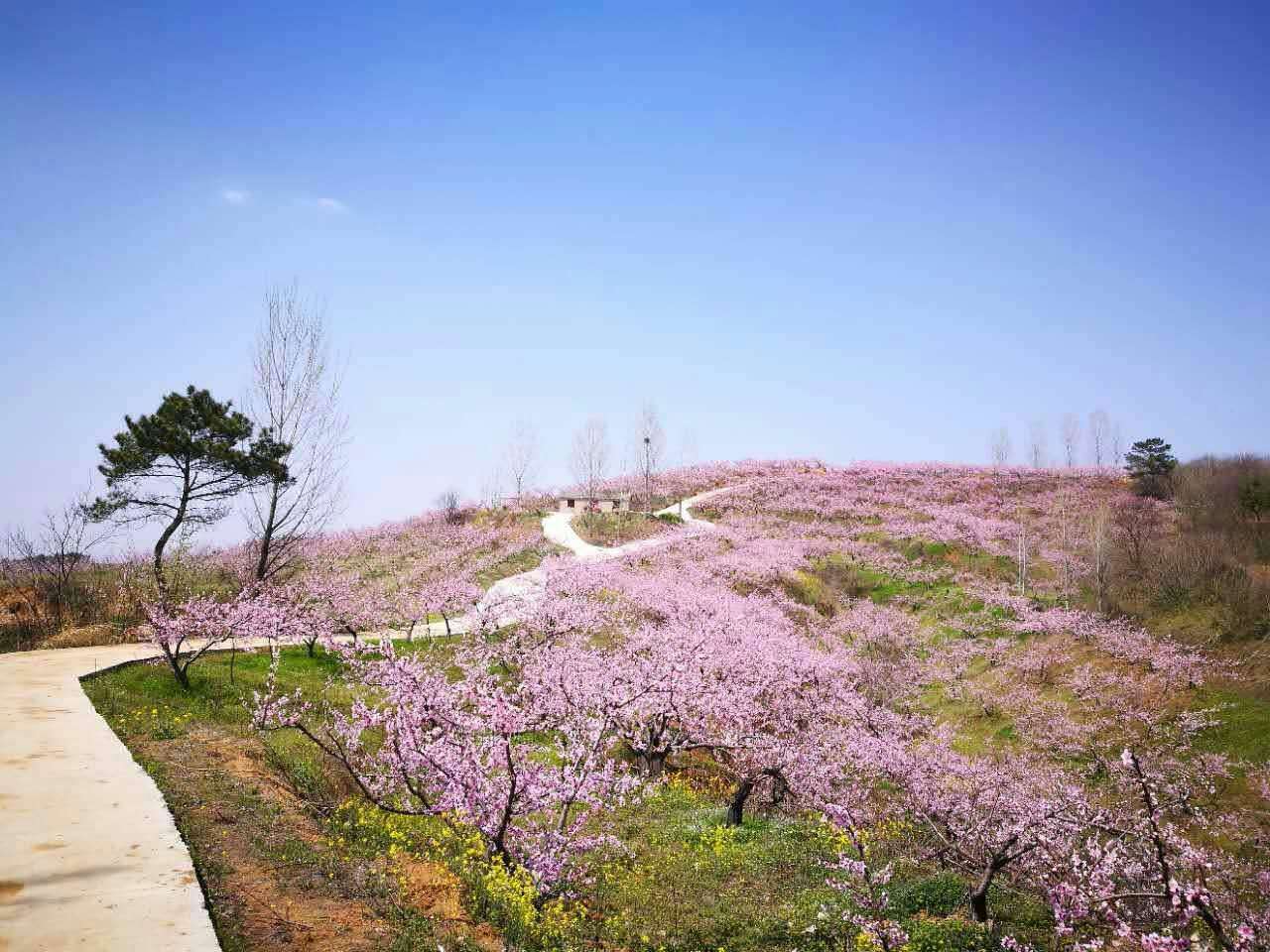 大棚村 位于桐柏黄岗镇南部十五公里外 10000亩的大桃林 漫山遍野的桃花 微风吹过 飘飘渺渺 氤氲迷离 香气扑鼻!
