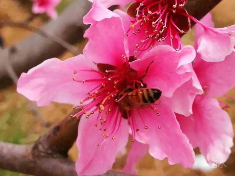 鲜桃花 二 三枝花萼 鲜艳欲滴 乍泄开来!