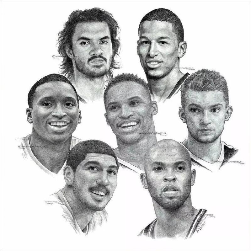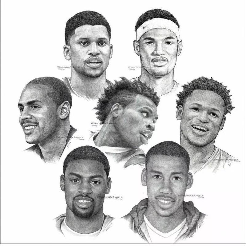 外国网友Heather R ooney Art 手绘的几位球星的半身画像,跟真人照一样一样的,逼真极了。 #老师,我要学画画# 下面一起来欣赏一下吧。