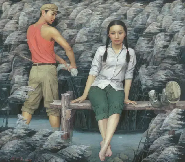 青春纪事七 水中割麦 150×100木板·坦培拉2007