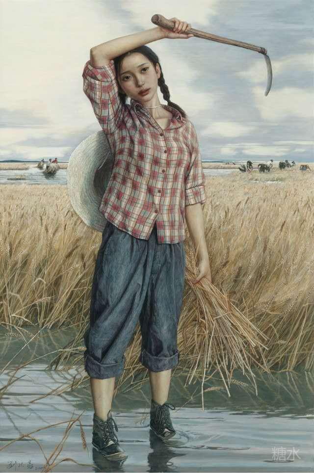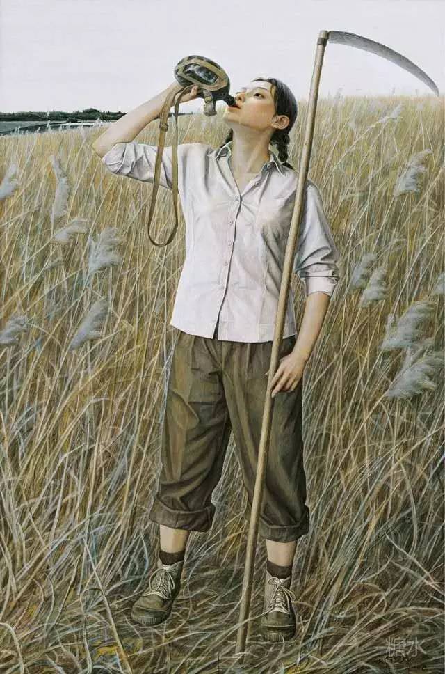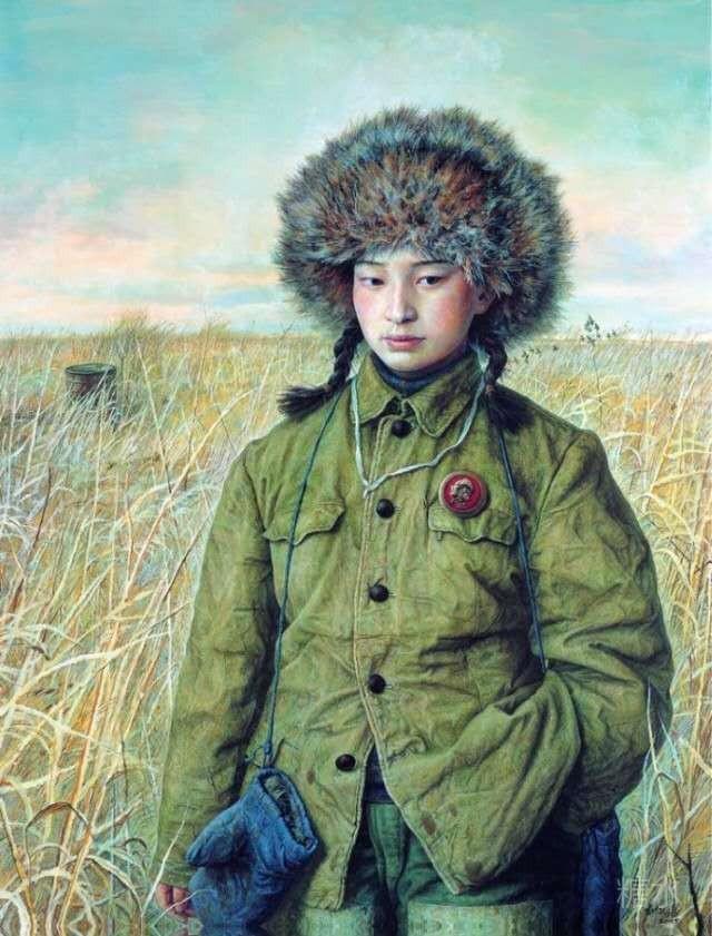 这里所言“麦田守望者”,非塞林格笔下的那个美国少年霍尔顿,而是中国当年“上山下乡”的知识青年;那是千千万万的人数,故准确的说法应该是——“麦田守望者”们。 画他们的画家是刘孔喜先生。他是当年千千万万“知青”中的一名。他下乡的地方有两种指语——一曰“北大荒”,二曰“黑龙江生产建设兵团”。而“北大荒知青”们的身份不仅是“知青”,还是“屯垦戍边”的“兵团战士”。孔喜先生自从与绘画这件事发生亲密接触以后,一直在画他们,画那些深烙在记忆中的,曾和自己朝夕相处的“历史青年”。 “历史青年”么?呵,怎么不是呢?“上山下乡”运动距今已四十余载矣,昨是今非,今非昨是,虔诚与青春,皆成往事。一代知青,风华不再。正是——“昔闻长老者,掩耳每不喜。奈何五十年,忽已亲此事”。 孔喜先生也将自己的青春调入油彩,一笔笔画进画作中了。他画作的题材,自然并不局限于“兵团战士”。但“北大荒知青”形象,显然是他最情有独钟的。 他还在画着自己最喜欢画的形象。并且,也还在画着自己内心的一种绵绵情愫,仿佛是在通过绘画凭吊什么…… 正如人们看到的,他笔下的“兵团战士”多为女性。严格地说,是些穿兵团服的少女。面部表情纯洁无邪的少女。她们的脸,似乎都有种超凡脱俗的修道气质,纯洁得如同心里只有上帝的修女。纯洁得无异于圣洁。 我认为,这肯定与他意识深处的美学理念与女性观有着必然的联系。他是中国写实派油画家中的一位,而中国油画乃是师承西洋油画起步、发展和演绎的。在早期西洋油画中,写实功力是衡量画家功力的最高尺度。举凡著名画家们,无不具有一流的写实水平,连毕加索也不例外。毕加索之写实绘画的水平,在青年时期就足以比肩写实画家的大师们了,改弦更辄是后来之事。早期西洋写实派的画家们,都受过扎扎实实的基本功训练,都极为重视细节的呈现。他们在美学理念上,又几乎都受到古典主义的深刻影响。古典主义画风,不论画人或是画景,以追求沉静优雅为上品。早期西洋写实派的画家们之绘画历程,又都多多少少地与宗教题材发生些联系。故他们的非宗教题材的画作,也都多多少少有些肃穆的宗教意味。总而言之,气质庄重。但某些神话题材的作品,如《劫夺吕西普的女儿》《春》等另当别论。从《嘉布里叶及其姐妹》到《秋千》,意味着俗世之情欲表现对宗教之庄重状态的颠覆。 沉静优雅也罢,肃穆庄重也罢,其实暗含着中国古代画家们的某些绘画理念,如“吾师心,心师目,目师华山”。 华山者,肃穆庄重之意象也。 凡逐此意象,纵使所画不过一树一花,一叟一妇,亦无不沉静优雅耳。沉静于是肃穆,庄重于是优雅,天下事理如此。 故不可以简单地认为,中国写实油画家们,美学理念还停留在西洋古典主义的光环之下。他们的实践,初视像极了西洋古典主义的画风,然内心里涌动的,也许更是中国古代画风那种不动声色地以形表意的境界之追求。 在孔喜先生,我觉得,他画笔下那些女“兵团战士”形象,以及她们周围或背后的衬景所一并传达出的那一种宗教画般的意味,也许正是他刻意为之的。 “上山下乡”运动,从人文主义的思想立场来重新审视,未尝不也是一场宗教般的全国运动。当年千千万万的知青,无不是情愿或不情愿殉道的信徒。宗教信徒也并非在一切方面一切时候都宁肯将命运无条件地交付于上帝摆布的人,尤其当信徒们只不过是青年甚或是少男少女的情况下。但他们既为信徒,既一生下来就处在一种宗教般的政治的成长环境中;既命定了不可能不允许不是信徒,纵使对“上帝”的谴旨不怎么情愿,但终究还是必须服从的。相对于威权无限的“上帝”,他们皆渺小得不足论道。 我以我之外行的眼看出,孔喜先生的此类画作,无不传达着以上人文主义的思想。 请看她们那一张张纯洁得几近于圣洁的脸;请看那一双双凝眸而睇的眼睛——它们在无言地诉说着只有懂她们的人才理解的心语。 而孔喜先生正是一个懂她们的人,如同他懂自己。 当年的知青一代与二战后的美国少年是截然不同的。 霍尔顿所过的是富裕中产阶级家庭的生活。他不是一个时代的反叛者,但他起码有机会颓废一番。当年的中国知青却大部分是城市平民贫民的儿女。他们中的知识分子家庭的儿女或曾经优越的干部家庭的儿女,那时的命况十之八九反而差于前者们。故几乎一概的知青们,不但皆无富裕的家庭背景,而且绝不可能去做霍尔顿做过的那类事情。 大多数的他们,头脑中根本不曾存在过什么颓废的欲念。 在艰苦繁重的劳动中连体力弱小比不上别人那么劲头十足都会自感罪过的人,怎么可能颓废一番呢? 所以我认为,孔喜先生将她们的面容皆画得那么纯洁,实在也是画出了特定时代的她们的本质。 知青一代的前身是红卫兵;这不能不使人联想到他们中某些人在“文革”中的不人道行径。于是一种叩问必然产生——怎么会是那样? 当然,也许孔喜先生在作画时并没这么思想,但一幅画它像一首诗一部文学作品一样;他人从中获得的感受越丰富,其画的艺术价值越高一些,画家的欣慰也便由此而越大一些。 孔喜先生自己将他的这一组画作命名为《青春纪事》,说明他对他所亲历过的那一段岁月是多么的难忘,也是多么的感触深深。正所谓其逝越久,其忆越频,其情越浓;剪不断,理还乱。 这乃