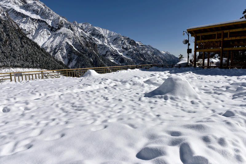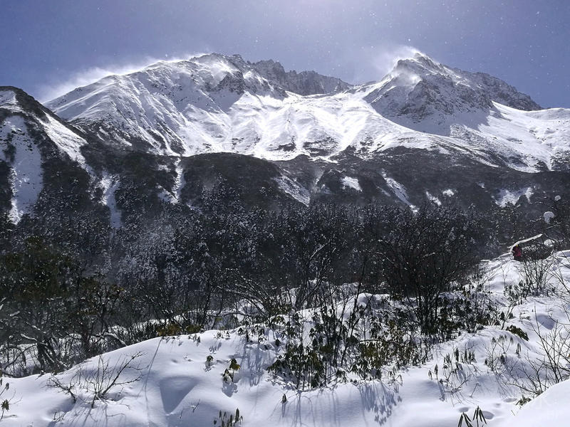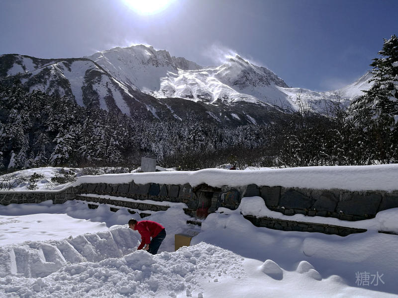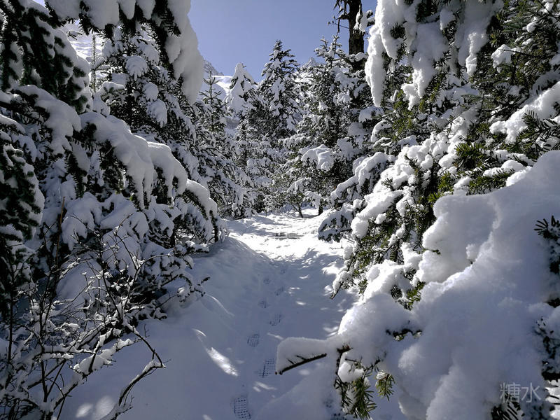 前一天山上下起了大雪,上一团旅友只见雪花漫天飞舞。今天则是风停雪止、艳阳高照,不得不说我们的人品不错。