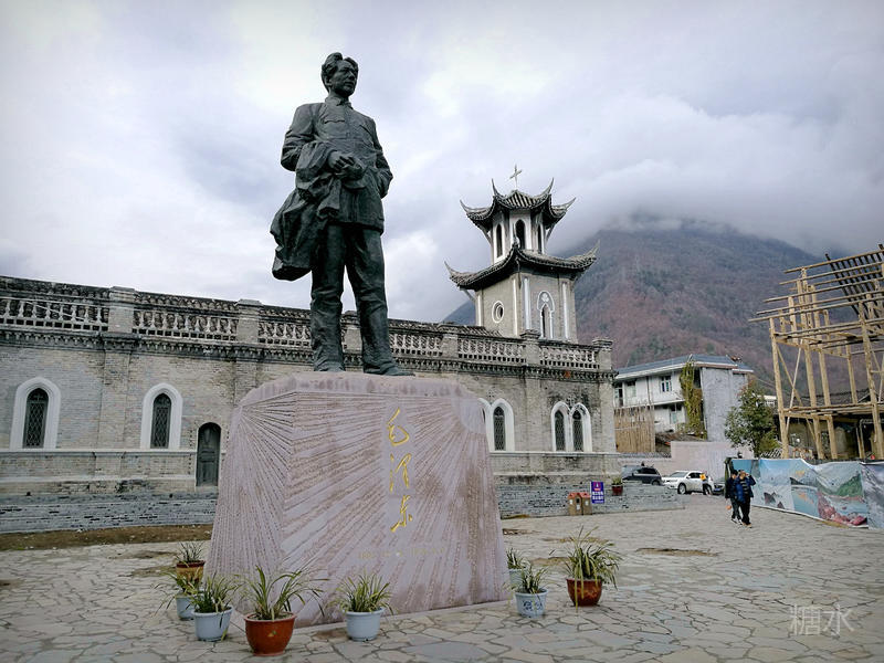 1935年两万名红军路经此地,毛泽东、朱德、周恩来等人曾在磨西镇的天主教堂居住,并在此召开了长征路上著名的磨西会议。