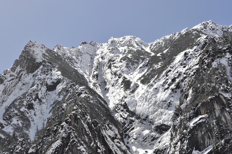 围绕着贡嘎山,周边有海拔6000米以上的卫士峰45座,构成了雄伟壮观的雪山群。