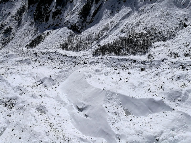 冰川沿着山谷倾泄而下,形成冰川弧拱、冰洞、冰阶梯、冰门、冰峰等奇妙景观,俯视山谷冰川时感觉非常震撼。